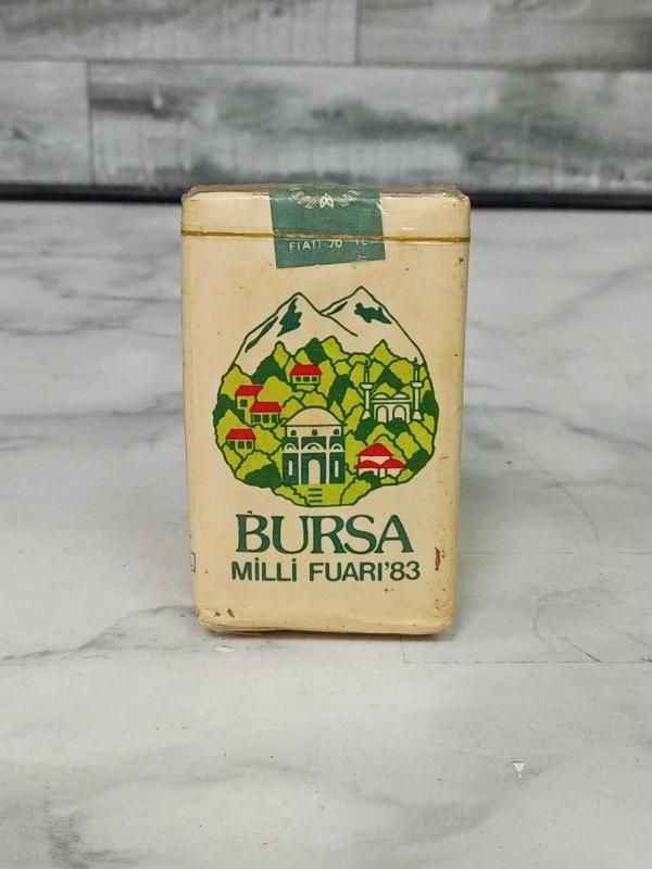 Antika Koleksiyonluk Nadir 1983 Bursa Milli Fuarı Sigarası - Açılmamış Sigara Paketi başlıklı antika/koleksiyon objesi Türkiye menşe’lidir. 1950-1999 arası dönemine aittir.