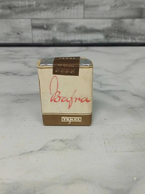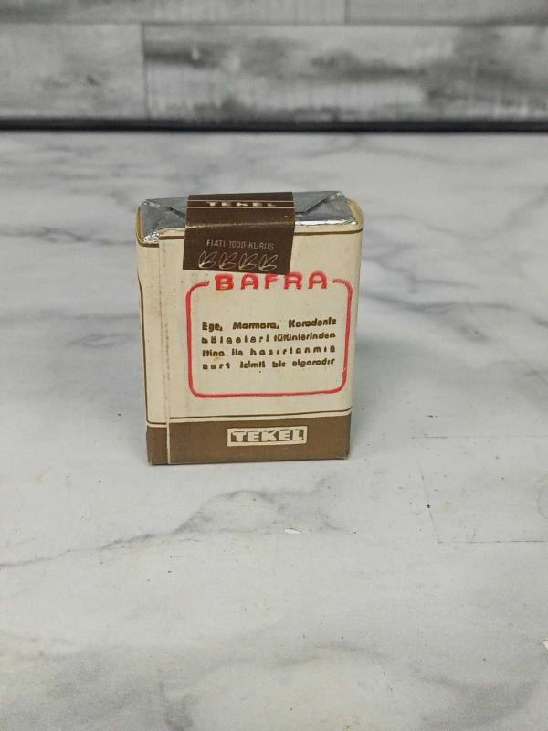 Antika Koleksiyonluk Nadir Bafra Filtresiz Sigarası - Açılmamış Sigara Paketi başlıklı antika/koleksiyon objesi Türkiye menşe’lidir. 1950-1999 arası dönemine aittir.