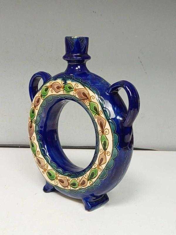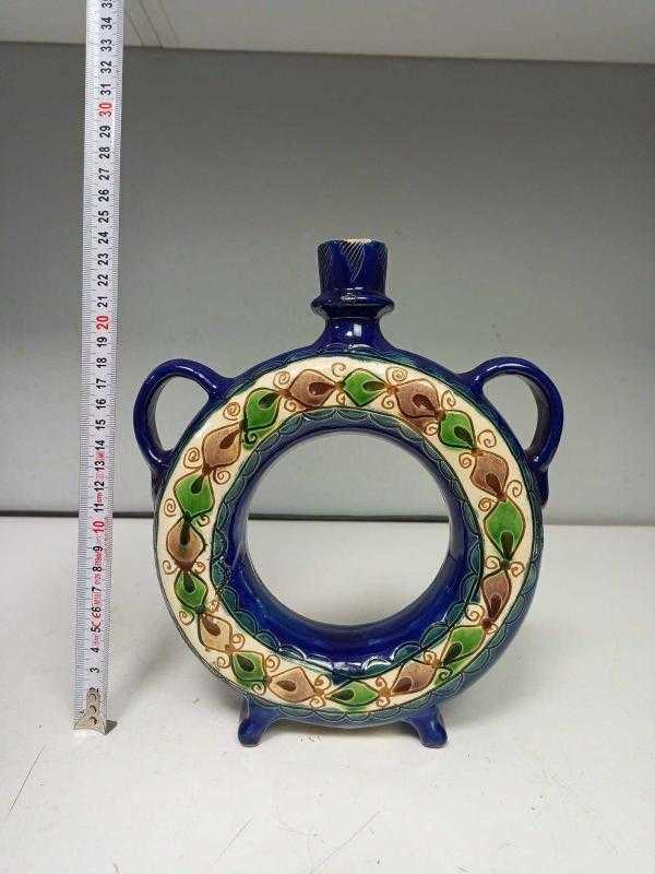 Antika Korond Üretimi El Yapımı El Boyama Sırlı Seramik Karaf başlıklı antika/koleksiyon objesi Avrupa menşe’lidir. 1920-1940 arası dönemine aittir.