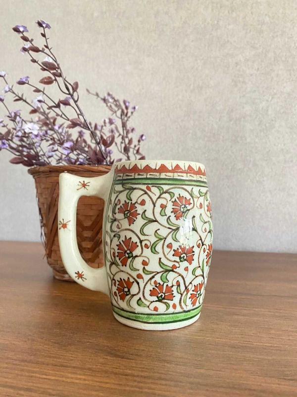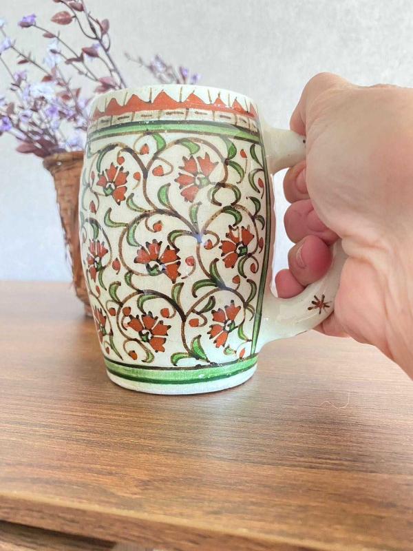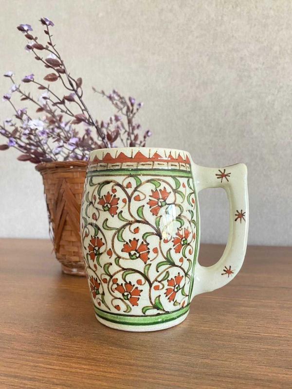 Cumhuriyet dönemi Kütahya çini el boyama büyük boy kupa