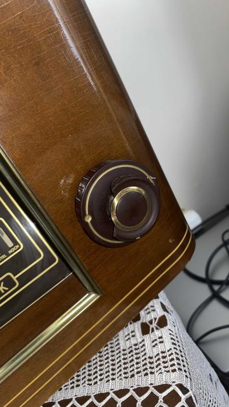 Berrak sesi vardır. Çift hoparlörlü. Made in GERMANY Orijinal FM’li. 1950’li yıllara aittir. Güçlü kanal çekimine sahip. 15 kg Uzunluk; 63,00 cm En; 31,50 cm Yükseklik; 41,50 cm Sadece kanal arama düğmesinde fotoğrafta görünen zararsız kırığı var. Diğer ilanlarıma bakabilirsiniz.
