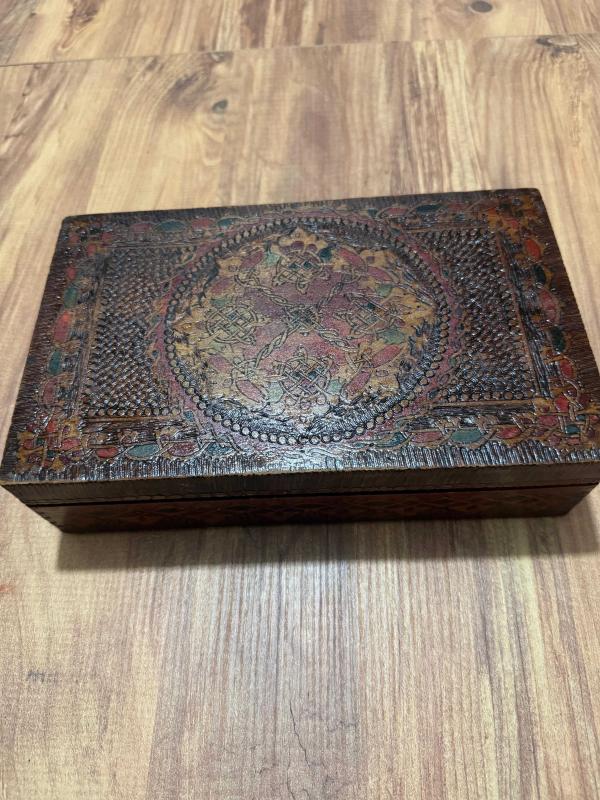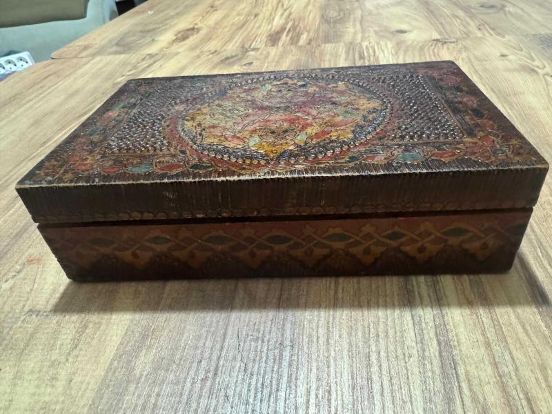 Antika Masif Pirinç Kakma El İşçiliği İçi kadife Takı Aksesuar kutusu 26x16 cm
