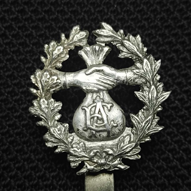 El ve para kesesi görselli rozet. Üzerindeki sembolün tam ne olduğu bilinmemekle birlikte 1700lerde İngiltere'de kurulan Order of Druids mason örgütüyle ilgisi olabilir. Görseldeki ürün