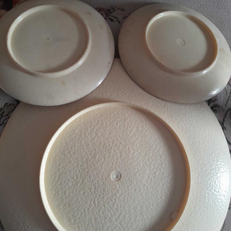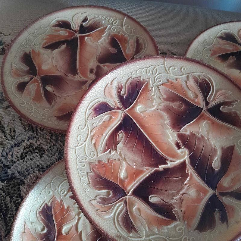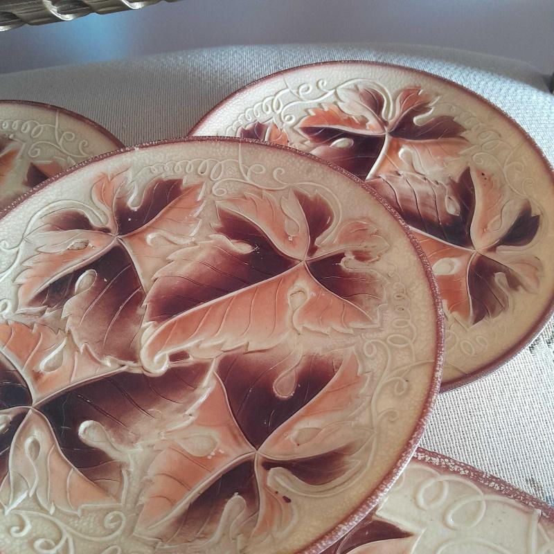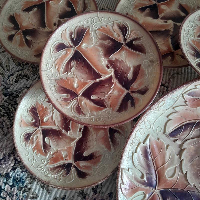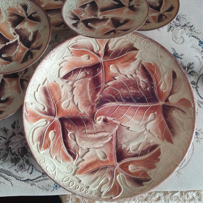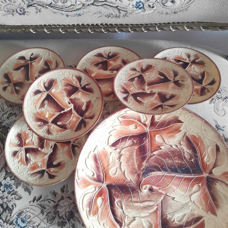6 adet orta boy tabak ile 1 adet büyük boy olup toplam 7 adettir. Üzerleri kabartma yaprak motiflidir.70 yıllık ürün olup ço temiz ve kullanıma uygundur