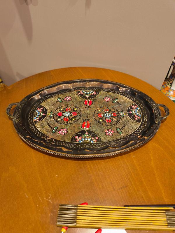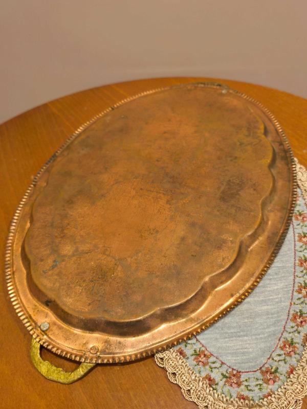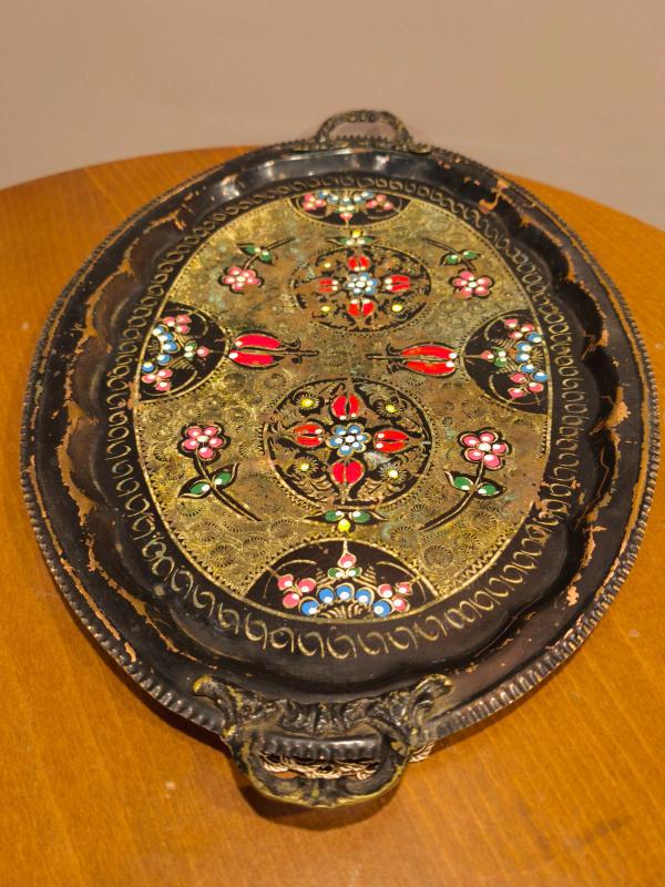 Çok iyi durumda mineli el boyamalı bakır tepsi