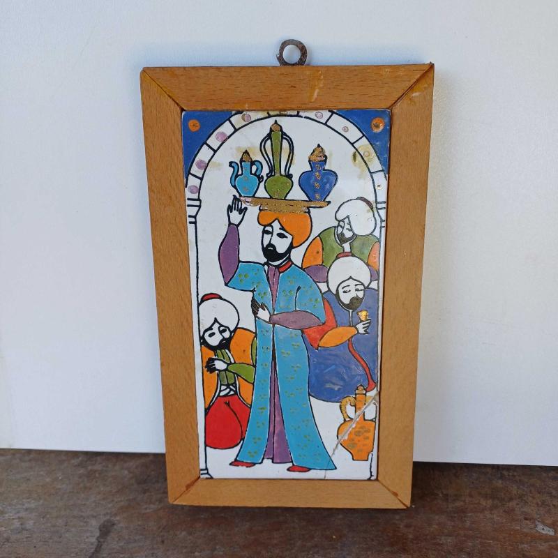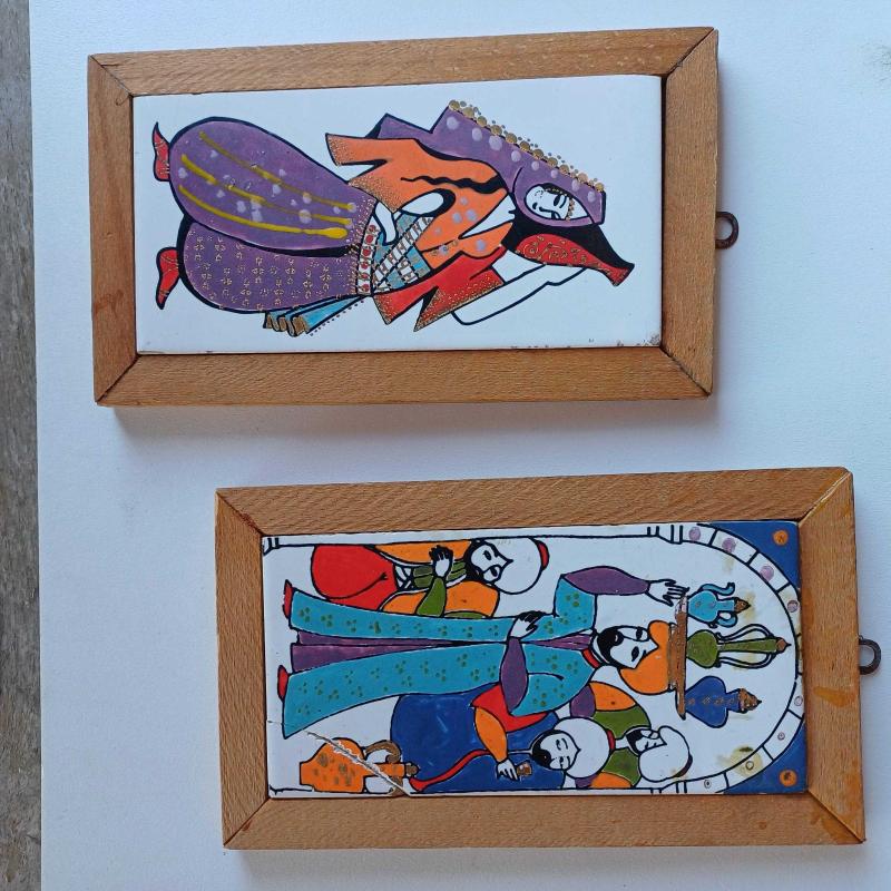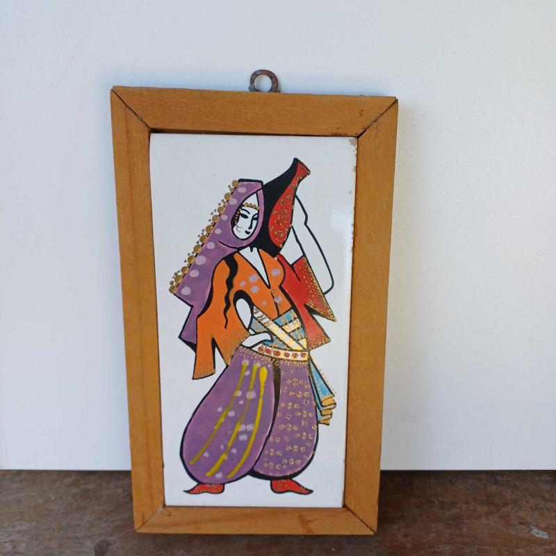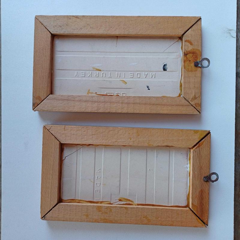 1960'lardan. Baba yadigarı. 2 adet el boyama minyatür figür (bir kadın ve 1 erkek) Ahşap cerceveli. Erkek figurun bir kosesinde kirik var ama yerine koyulmuş(bkz fotolar) Olduklari hali ile fotograflanmis. Yasanmisliklarin guzellik kattığıi 2 eser. Gün ışığında altin ışıltılı detaylar mevcut.