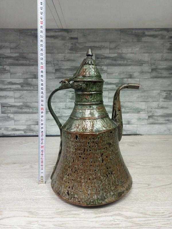 Antika Muazzam Patinaya Sahip Trabzon Bakır İbrik başlıklı antika/koleksiyon objesi Türkiye menşe’lidir. 1920-1940 arası dönemine aittir.