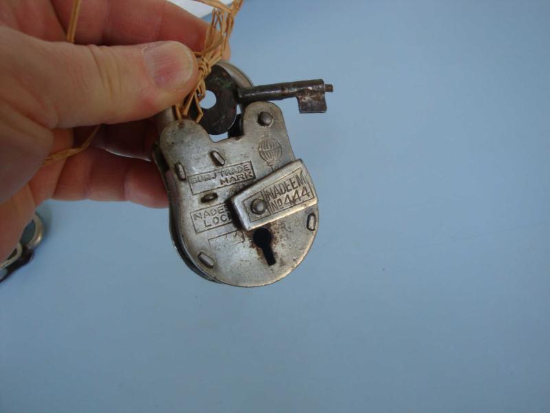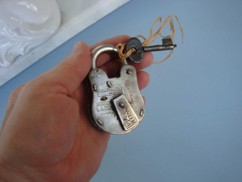 " Antika " NADEEM / No: 444 Orjinal Anahtarlı ASMA KİLİT " Ürün eski yıllara ait olup ÇOK İYİ ve ÇALIŞIR durumdadır ,, herhangi bir hasarı yoktur " Kaçırılmaz,,, Not : Yeni Yapım değildir ,, ORJİNAL DÖNEMİNE AİTTİR ,, NADİR bir Obje...