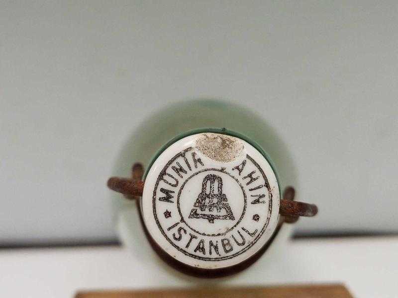 Antika Nadir Porselen Mandal Kapaklı Münir ŞAHİN Eczacılık İlaç Şişesi başlıklı antika/koleksiyon objesi Türkiye menşe’lidir. 1940-1959 arası dönemine aittir.