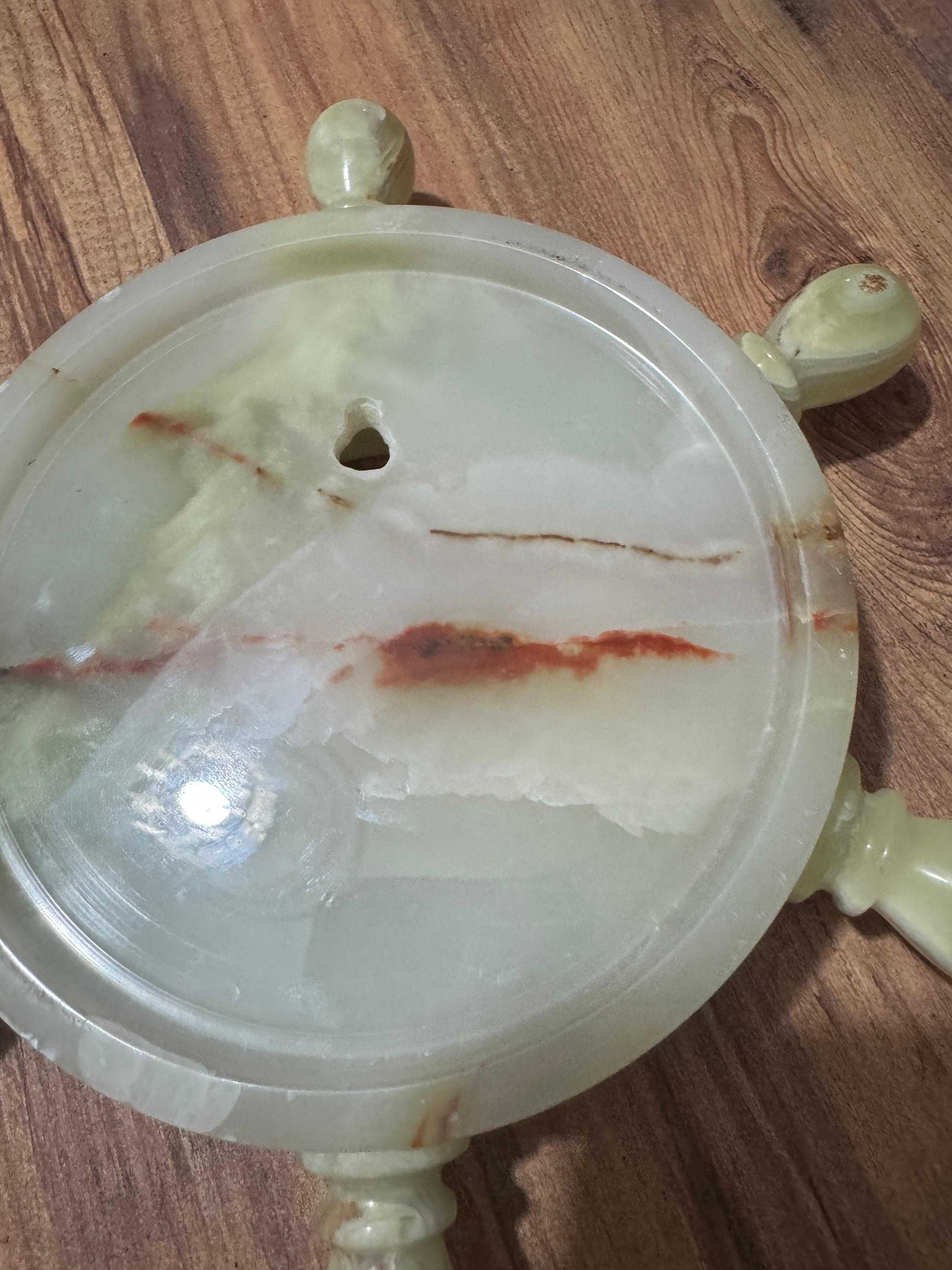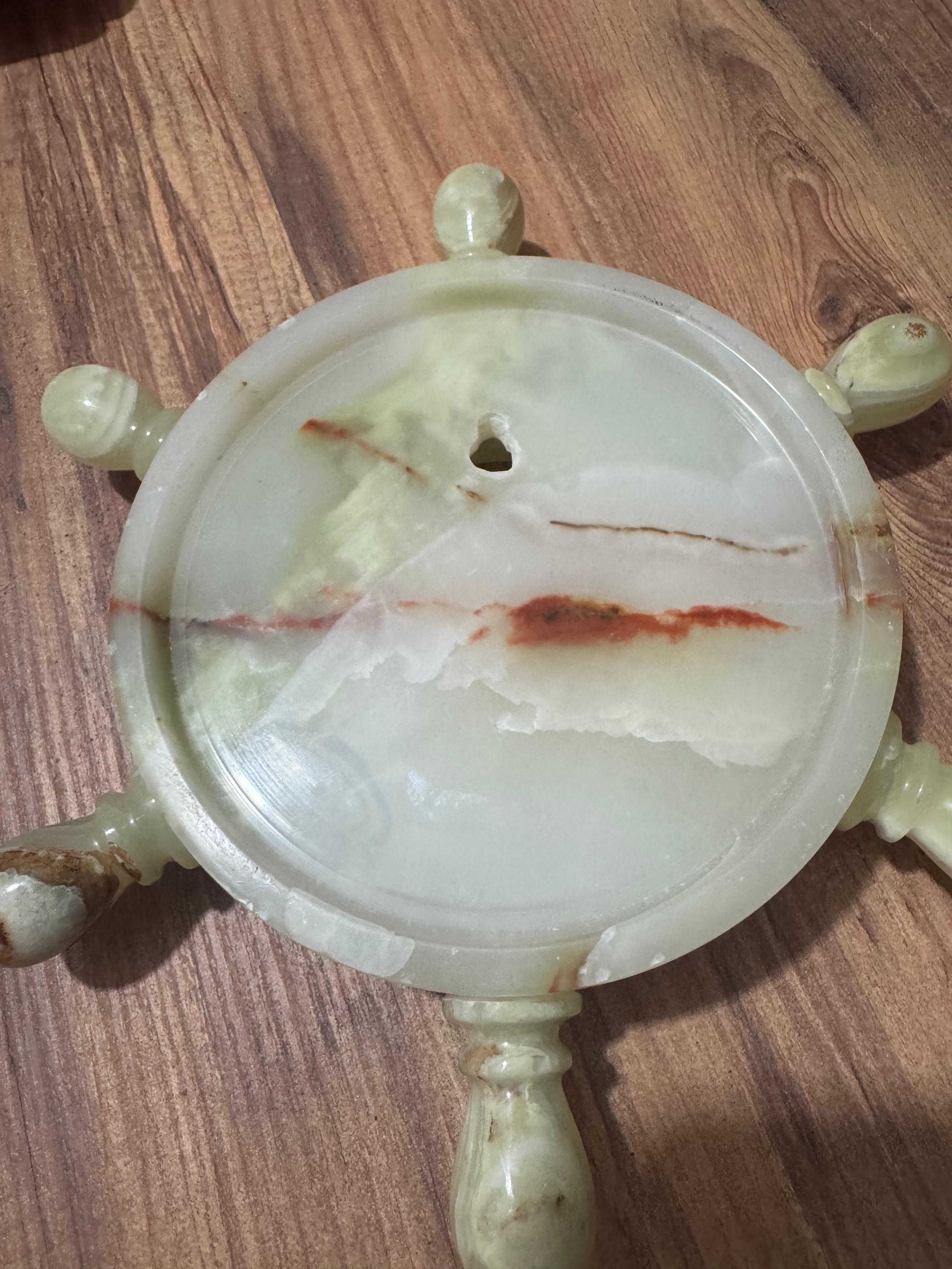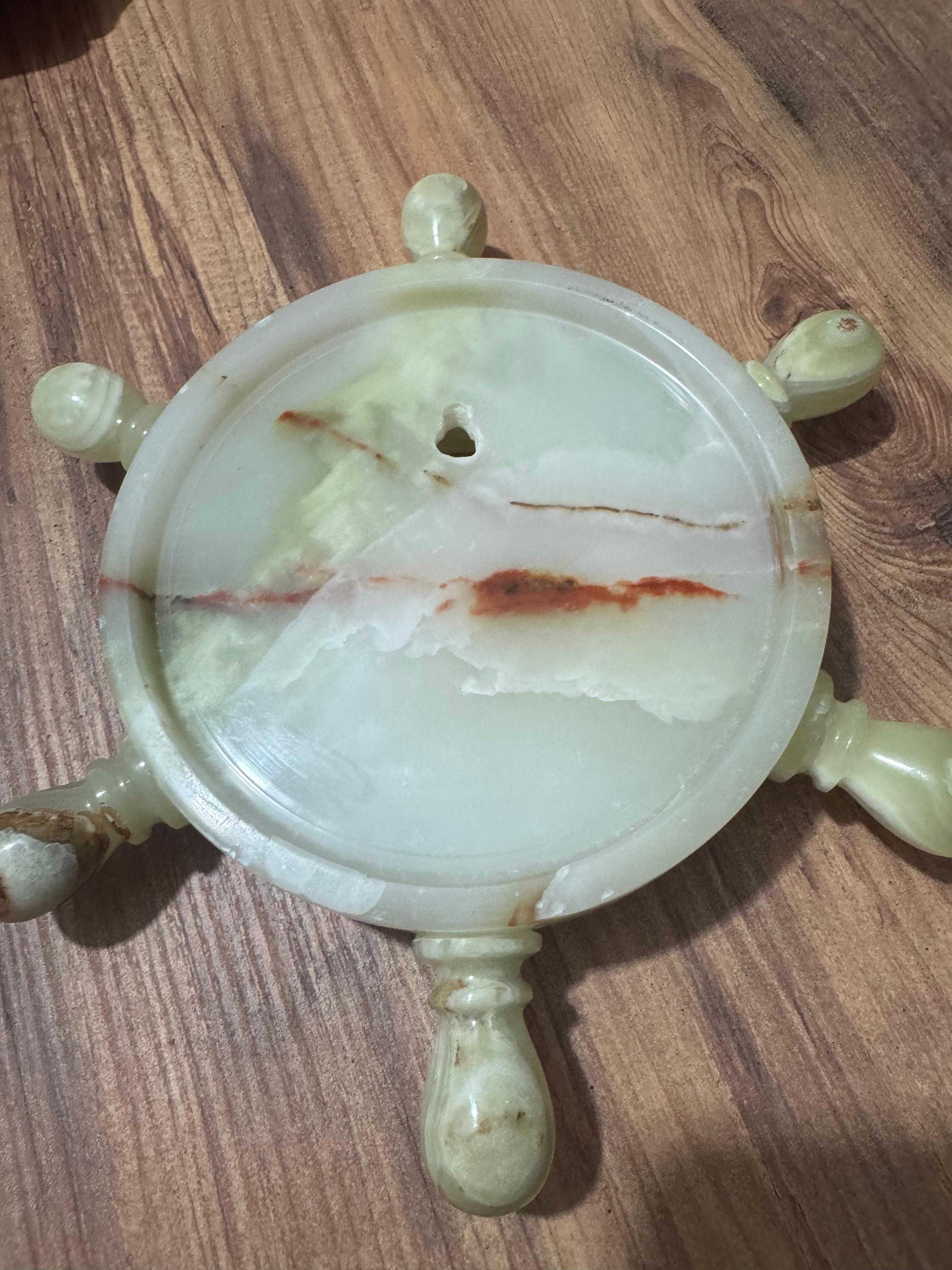 Antika Oniks Doğal Taş Gemi Dümeni Duvar Saati Çalışır durumda Dümen çapı 25 cm Saat için iç gövde çapı 9 cm Dış gövde çapı 15 cm Her hangi kırığı çatlağı yok.