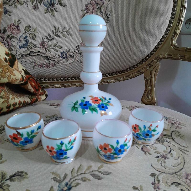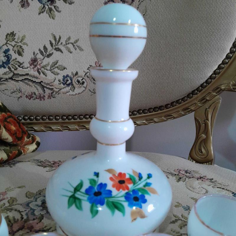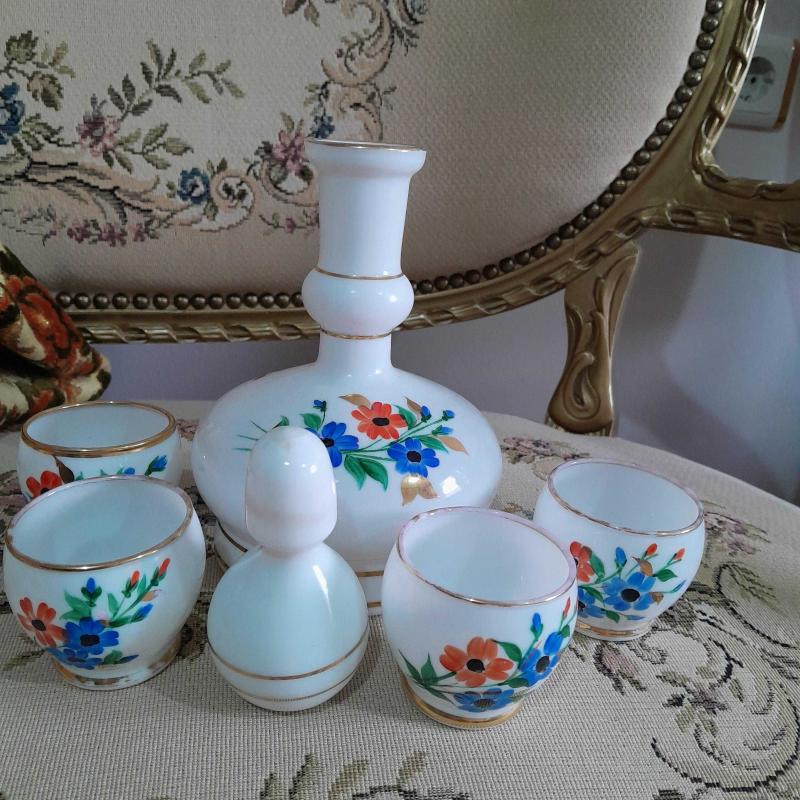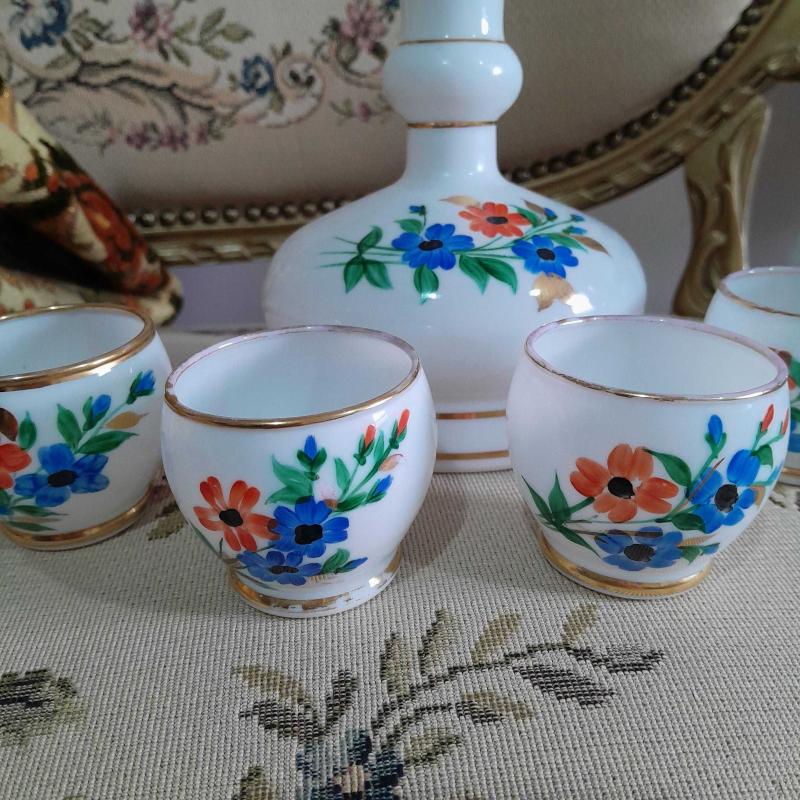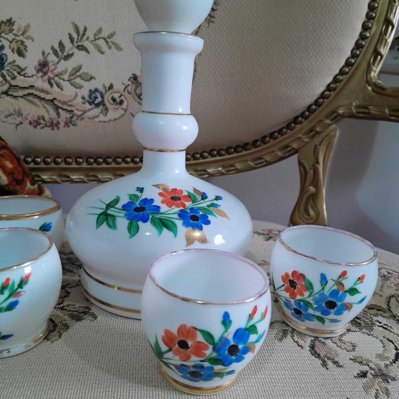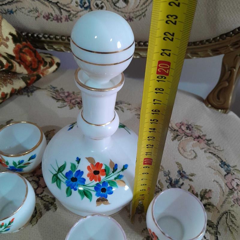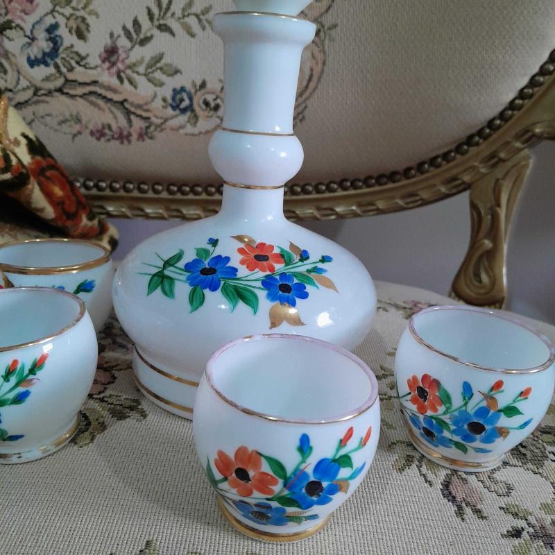 Opalin Cam Üzeri el Boyama olup nadir üründür. Opalin cam nadir ve değerlidir.Yaşlı ürün olduğu için bardak ağız kısmında ufak belirsiz silinmeler vardır.