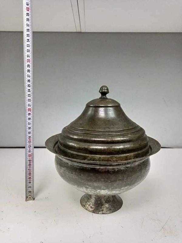 Antika Osmanlı Büyük Bakır Kapaklı Sahan başlıklı antika/koleksiyon objesi Osmanlı menşe’lidir. 1900-1919 arası dönemine aittir.