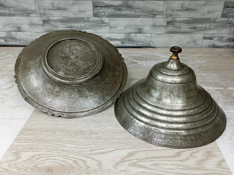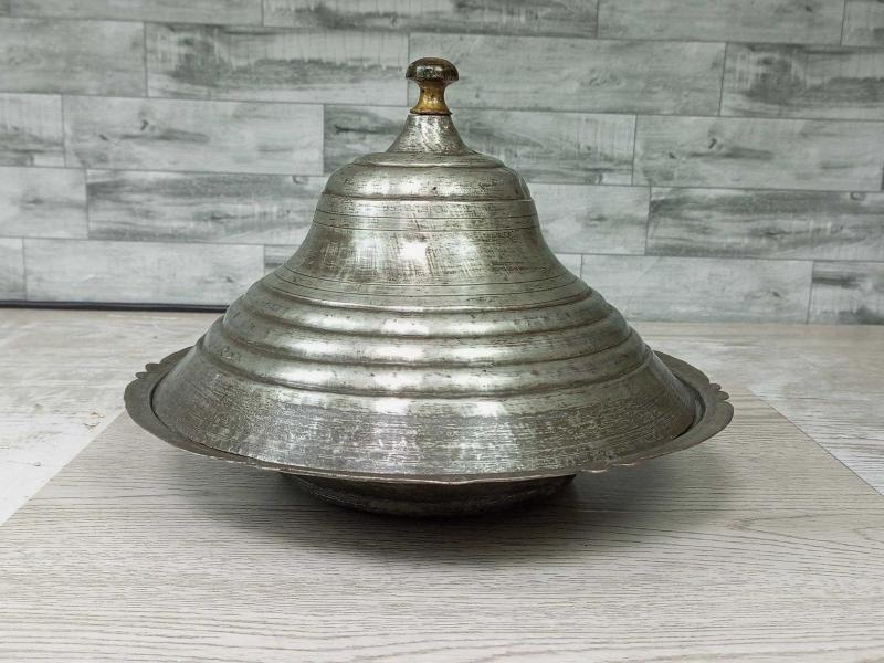 Antika Osmanlı Damgalı Kapaklı Bakır Sahan - Tabak başlıklı antika/koleksiyon objesi Osmanlı menşe’lidir. 1900 öncesi dönemine aittir.