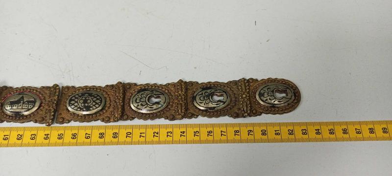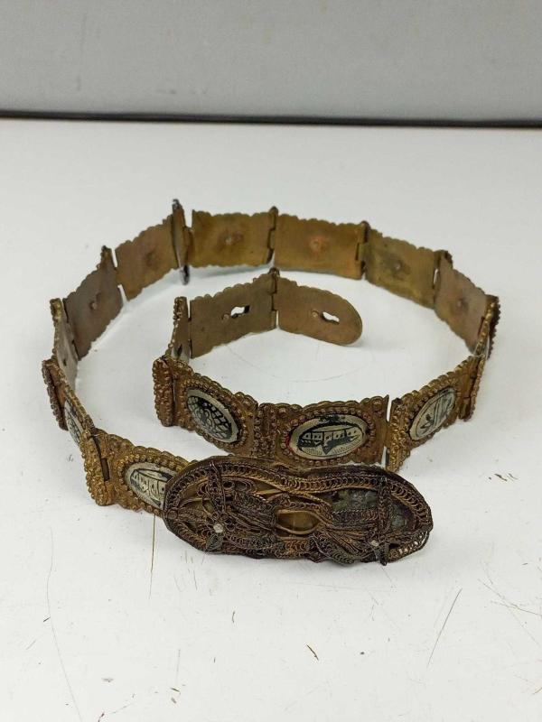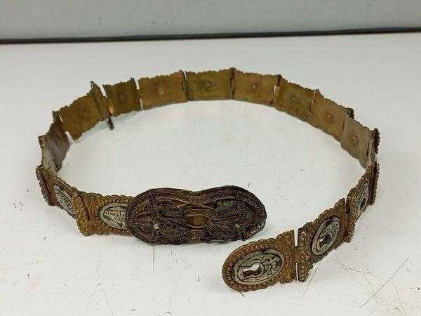 Antika Osmanlı Dönem Damgalı Gümüş Savatlı Gelin Kemeri başlıklı antika/koleksiyon objesi Osmanlı menşe’lidir. 1900-1949 arası dönemine aittir.