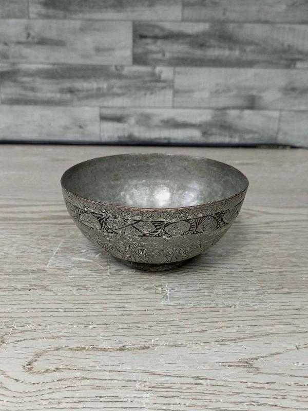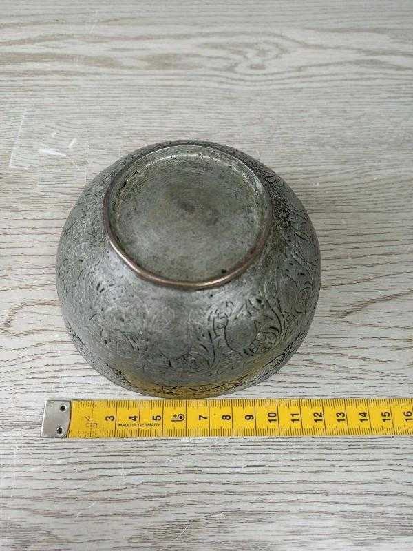 Antika Osmanlı Dönem Kalem İşçilikli Bakır Kase - Tas başlıklı antika/koleksiyon objesi Osmanlı menşe’lidir. 1900 öncesi dönemine aittir.