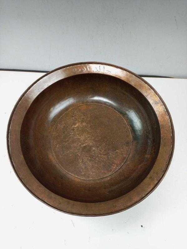 Antika Osmanlı Dönem Yazılı Nadir Bronz Çanak - Tabak başlıklı antika/koleksiyon objesi Osmanlı menşe’lidir. 1900 öncesi dönemine aittir.
