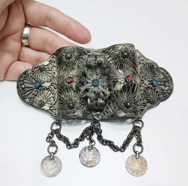 Antika Osmanlı Dönemi Bakır üzeri Gümüş Kaplama Telkari Mavi ve Kırmızı Taşlı Kemer Tokası 0091, 8 gün önce kitantik’te satışa sunulmuştur.