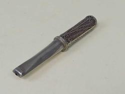 Sizlere tümüyle Antika Osmanlı Dönemi Usta ve Şah Damgalı Telkari İşçilikli Gümüş Sigara Ağızlığı sunuyoruz ANTİQUE ERA ELEGANCE MAĞAZAMIZDAN SİZLERE SUNDUĞUMUZ DİĞER İLANLARI PROFİLMİZDEN GÖREBİLİRSİNİZ.
