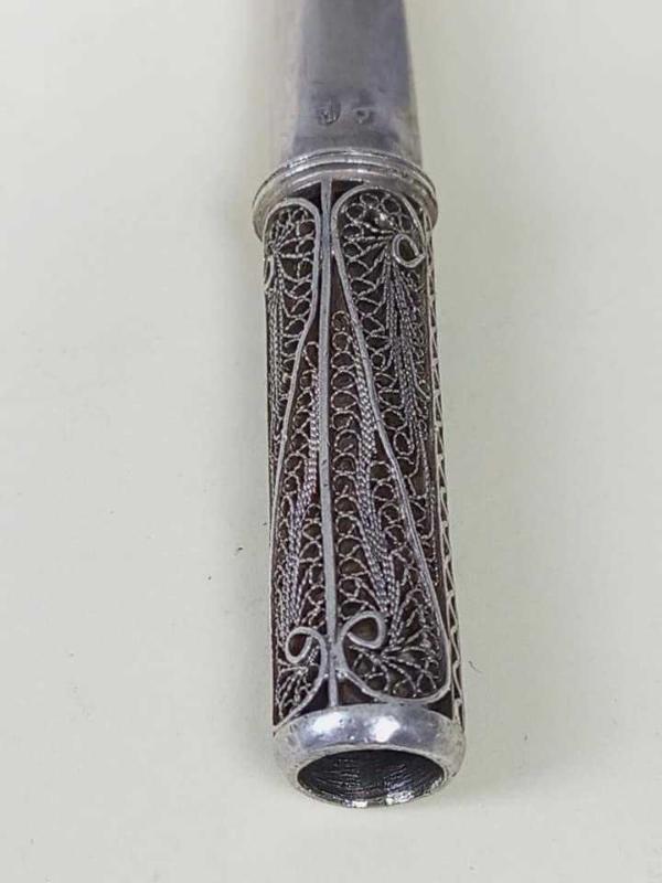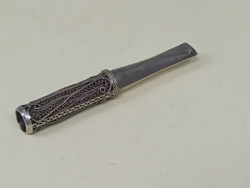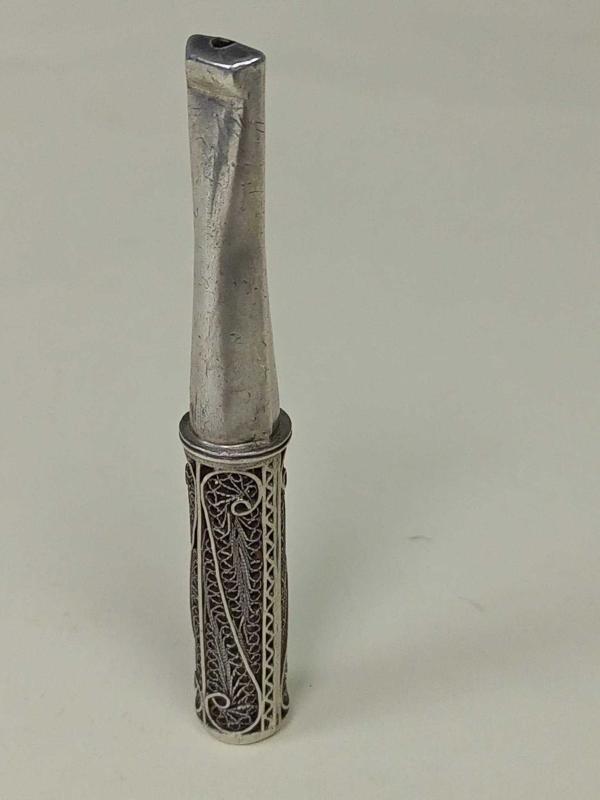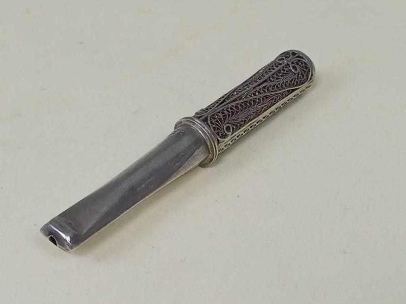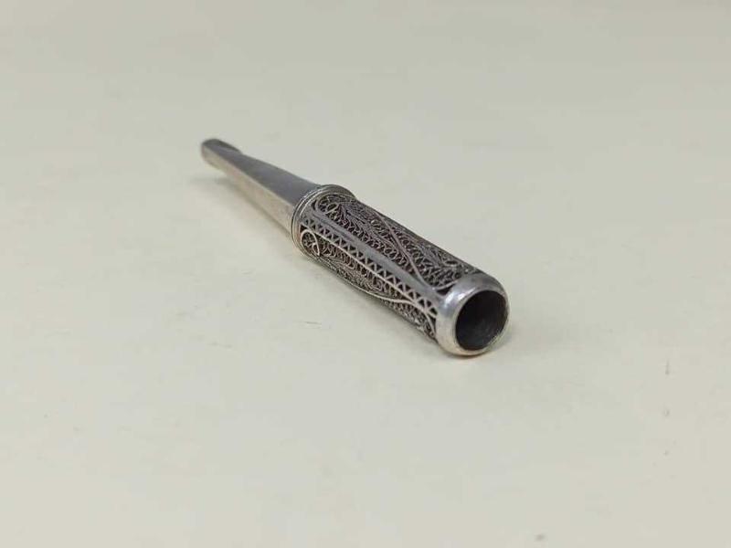 Antika Osmanlı Dönemi Usta ve Şah Damgalı Telkari İşçilikli Gümüş Sigara Ağızlığı başlıklı antika/koleksiyon objesi Osmanlı menşe’lidir. 1900 öncesi dönemine aittir.