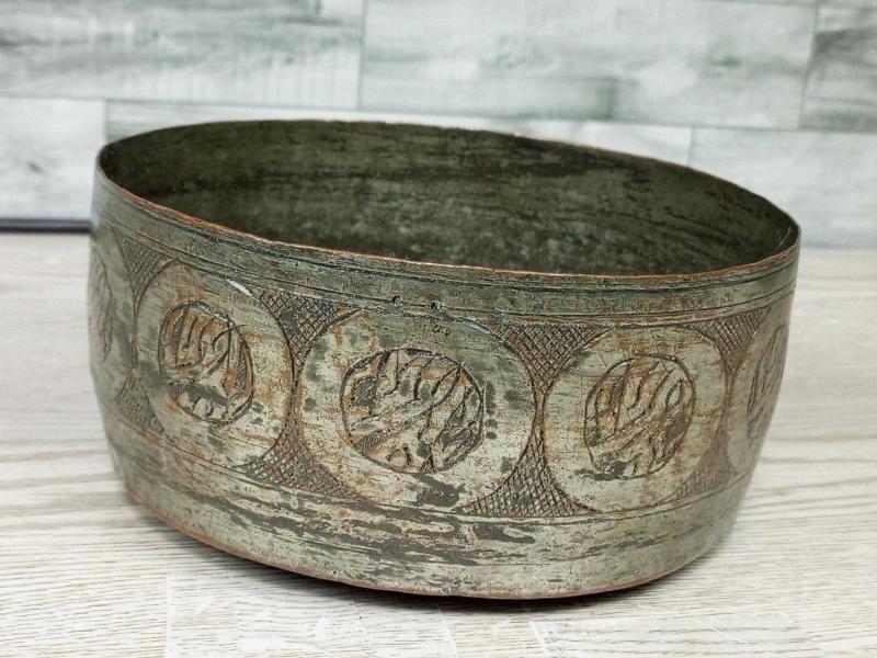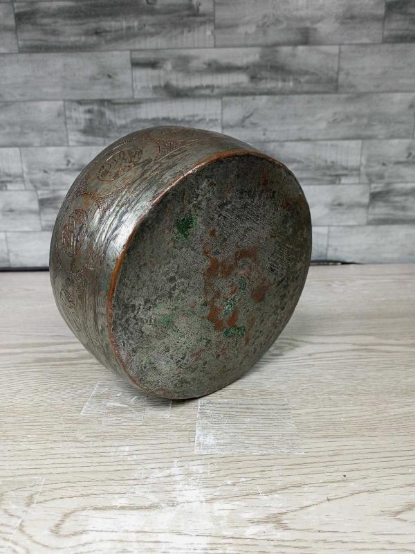 Antika Osmanlı Kalem İşçilikli Bakır Kase - Tas başlıklı antika/koleksiyon objesi Osmanlı menşe’lidir. 1900 öncesi dönemine aittir.