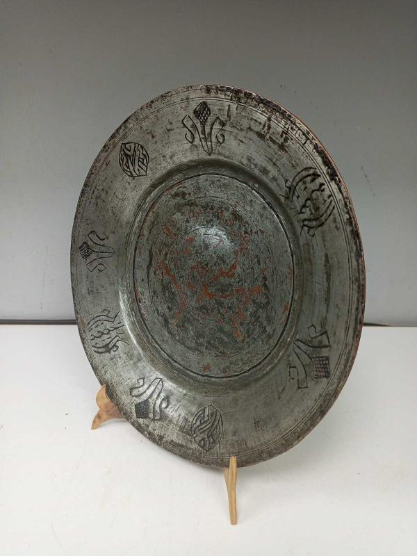 Antika Osmanlı Kalem İşçilikli Dövme Bakır Lenger başlıklı antika/koleksiyon objesi Osmanlı menşe’lidir. 1900-1919 arası dönemine aittir.