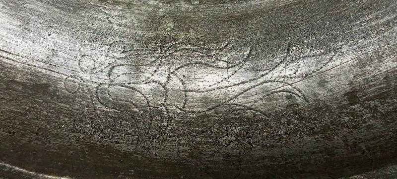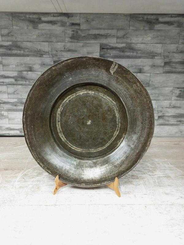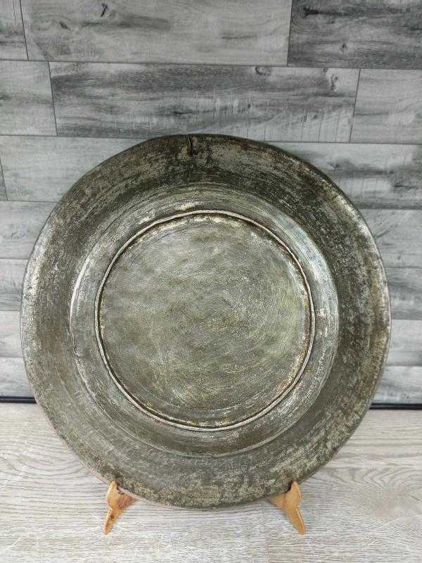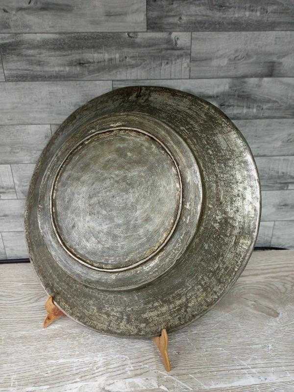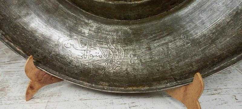 Antika Osmanlı Saz Tuğralı Bakır Yazılı Tabak - Lenger başlıklı antika/koleksiyon objesi Osmanlı menşe’lidir. 1900 öncesi dönemine aittir.