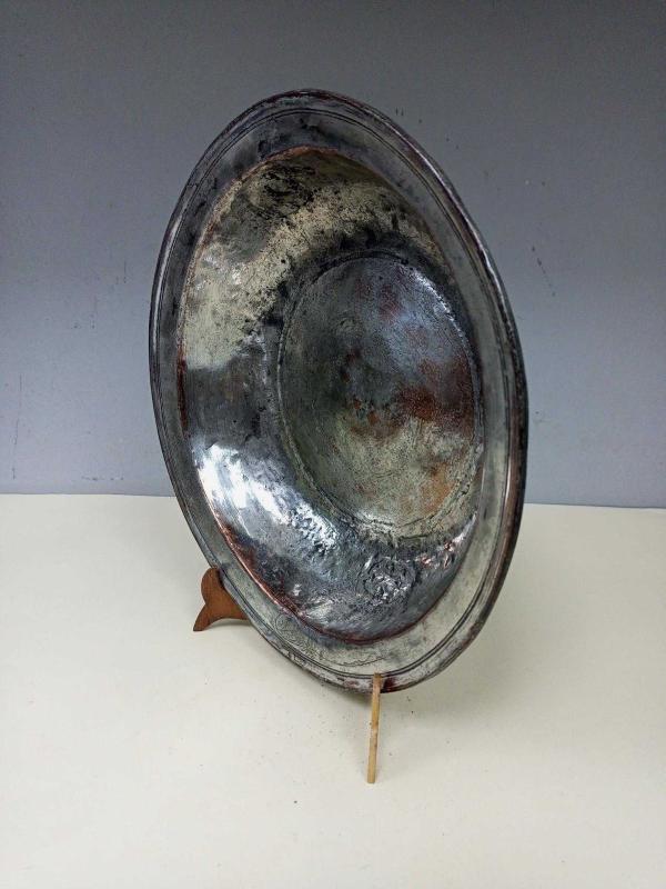 Antika Osmanlı Saz Tuğralı - Tarihli Dövme Bakır Sahan başlıklı antika/koleksiyon objesi Osmanlı menşe’lidir. 18.yy öncesi dönemine aittir.