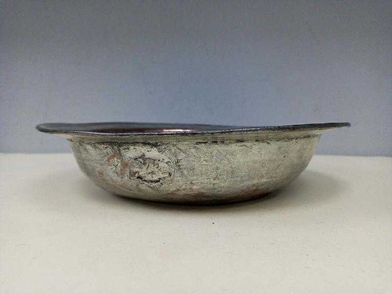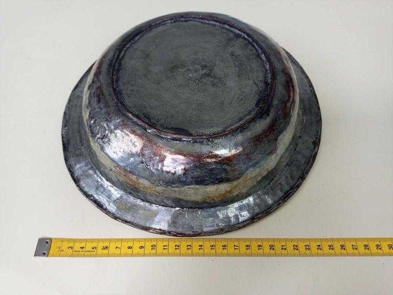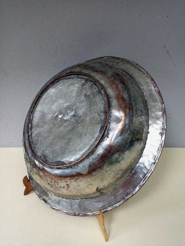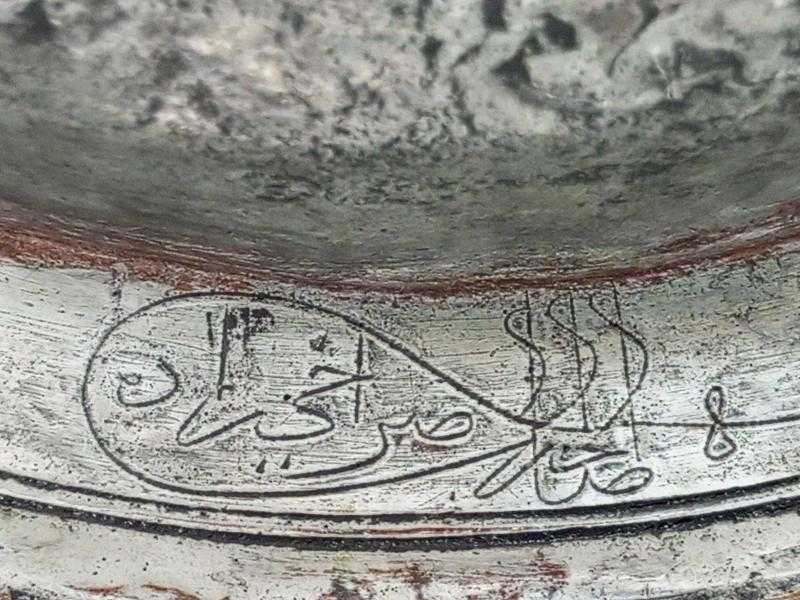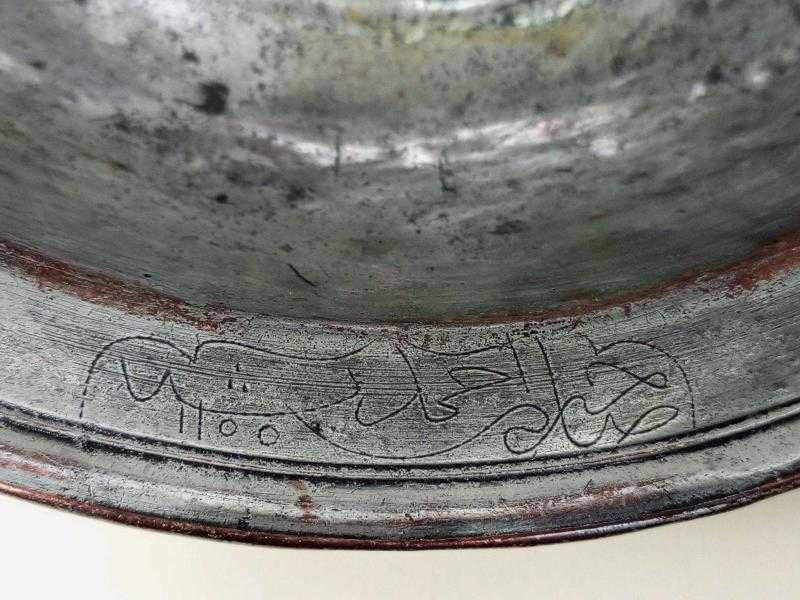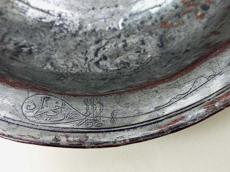 Antika Osmanlı Saz Tuğralı - Tarihli Dövme Bakır Sahan başlıklı antika/koleksiyon objesi Osmanlı menşe’lidir. 18.yy öncesi dönemine aittir.