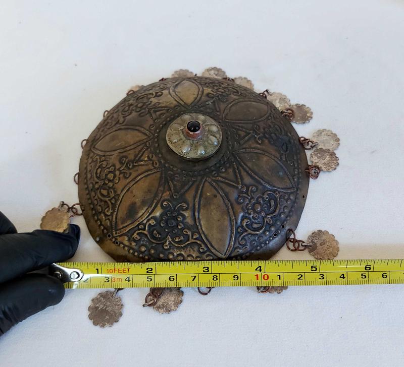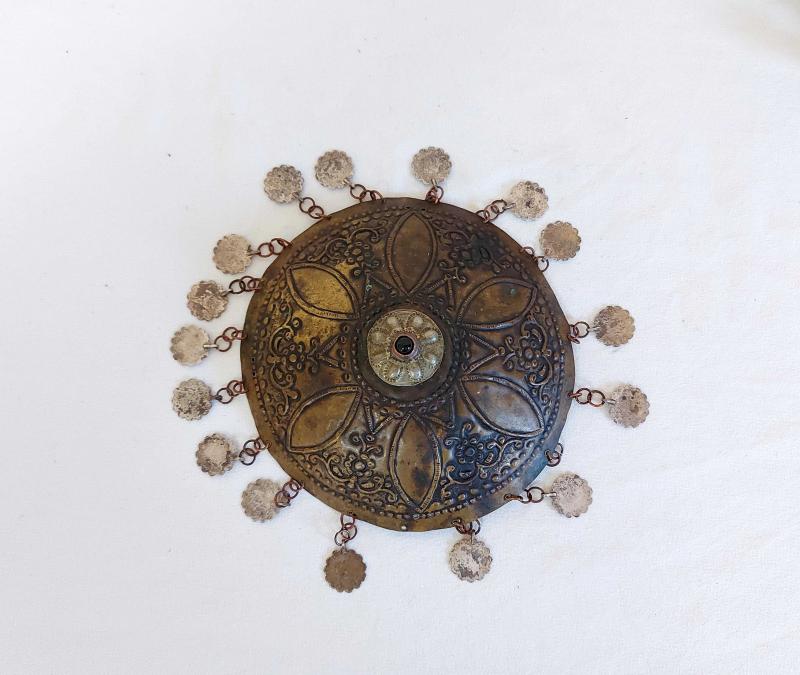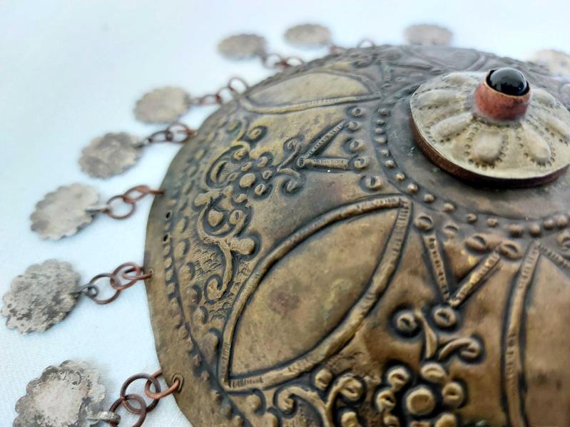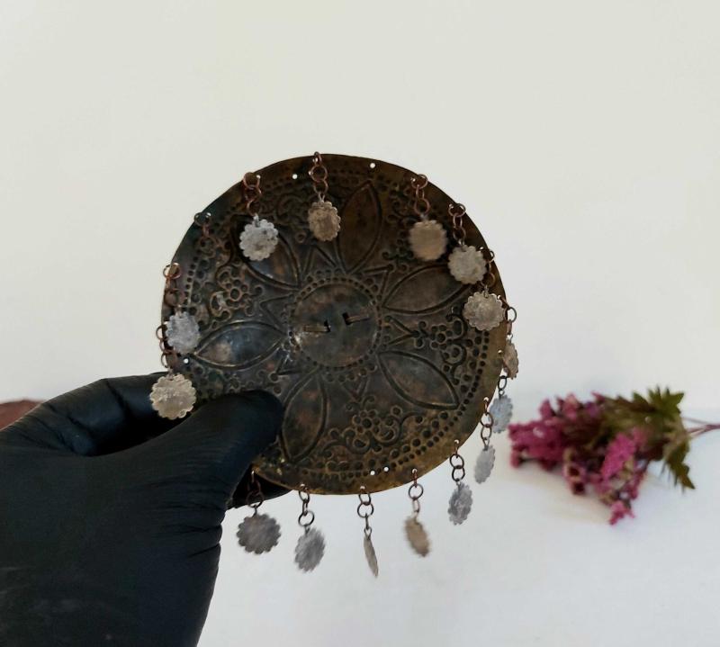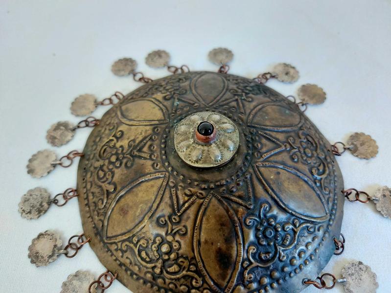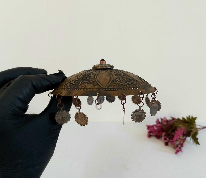 Antike Osmanlı dönemi Alpaka malzeme ( Düşük Ayar Gümüş) Tepesinde Taş var Saçaklı - süslemeli Ço temiz sağlam Tepelik 11cm x 5cm Eski - Sağlam - Temiz