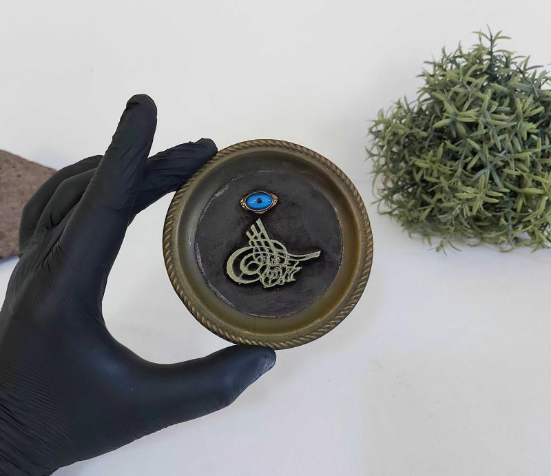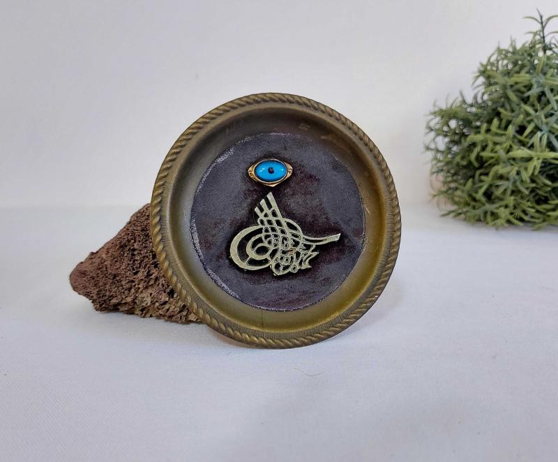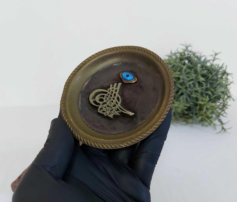 Antika Osmanlı Tuğralı Nazarlık - Tuğra ve Nazar Biblo - Mini Boy Masa Üzeri Nadir nazar biblo - 003 başlıklı antika/koleksiyon objesinin menşei belirtilmemiştir. Objenin ait olduğu dönem bilinmeketedir.