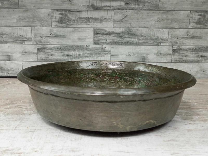 Antika Osmanlı Yazılı - Tarihli Büyük Bakır Tabak başlıklı antika/koleksiyon objesi Osmanlı menşe’lidir. 18.yy öncesi dönemine aittir.