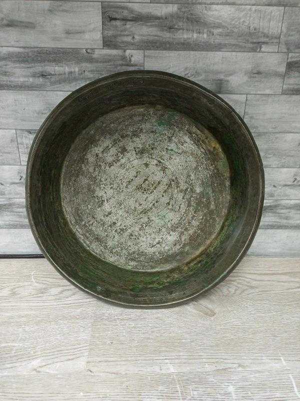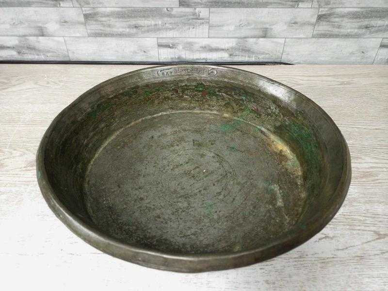 Antika Osmanlı Yazılı - Tarihli Büyük Bakır Tabak başlıklı antika/koleksiyon objesi Osmanlı menşe’lidir. 18.yy öncesi dönemine aittir.