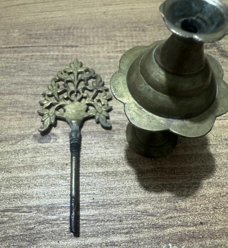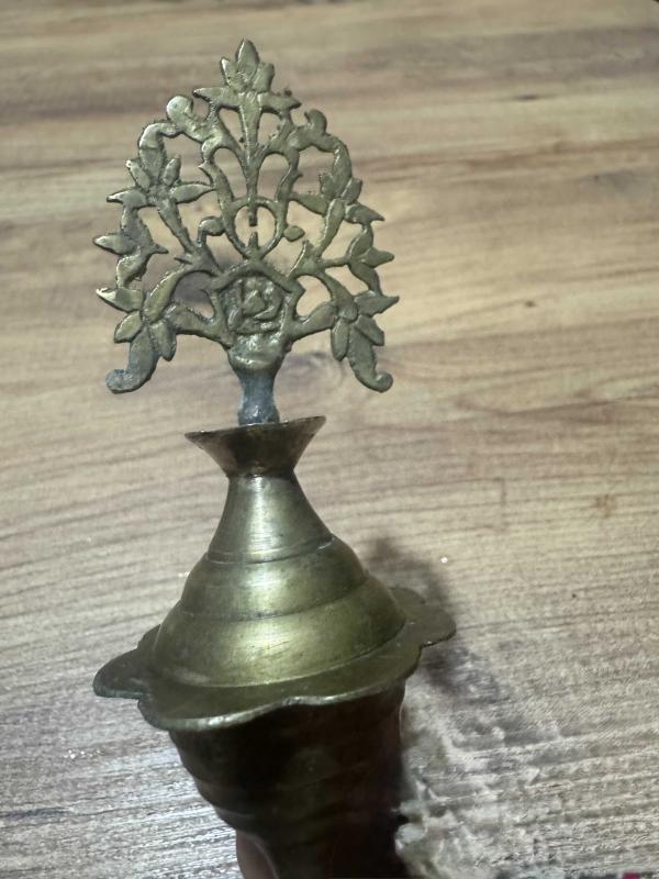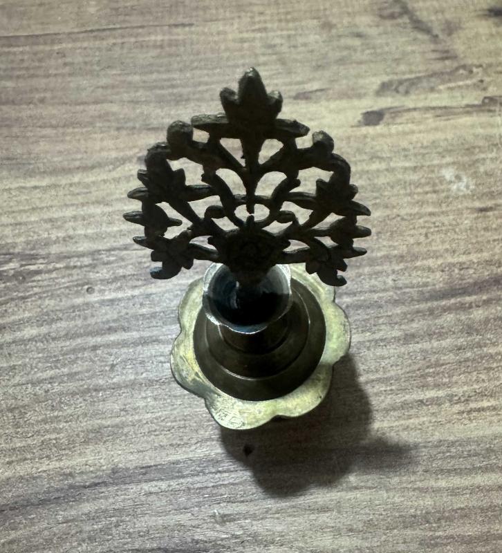 Antika Otantik Pirinç Sürmedan Tamamı el işçiliği, masif pirinç. Üst kısmı bitkisel motifli (Hayat Ağacı formunda) zarif işlemelere sahiptir.