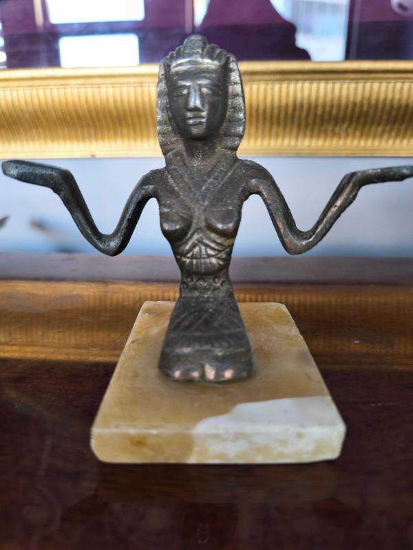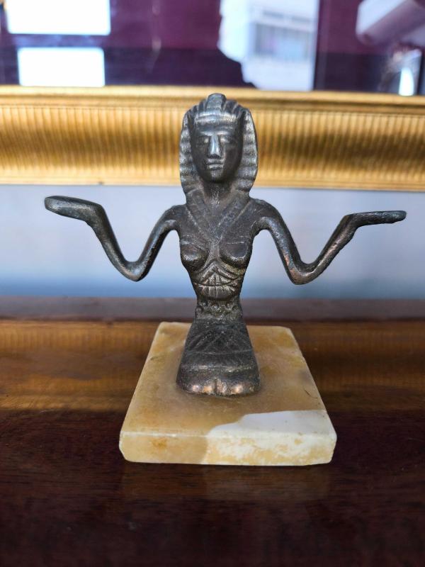 Mermer kaidesinde eski pirinç döküm mısır temalı obje.