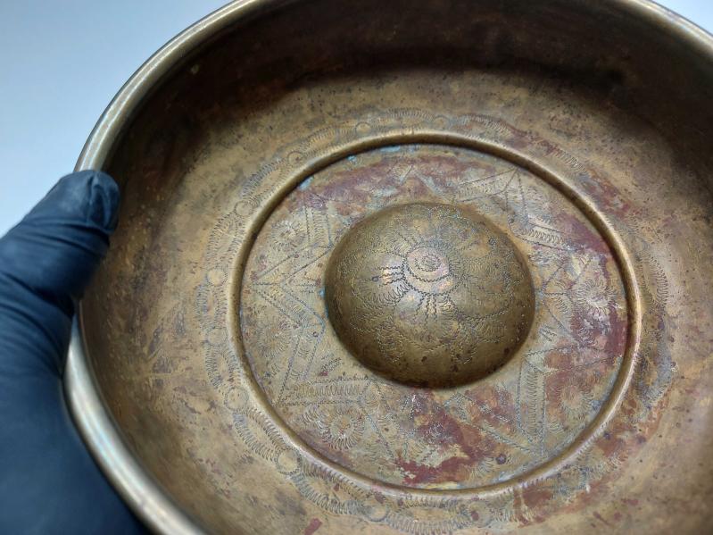 Antika Pirinç Hamam Tası - Çiçek Süslemeli - Şifa Tası - Çok Büyük Boy başlıklı antika/koleksiyon objesinin menşei belirtilmemiştir. Objenin ait olduğu dönem bilinmeketedir.