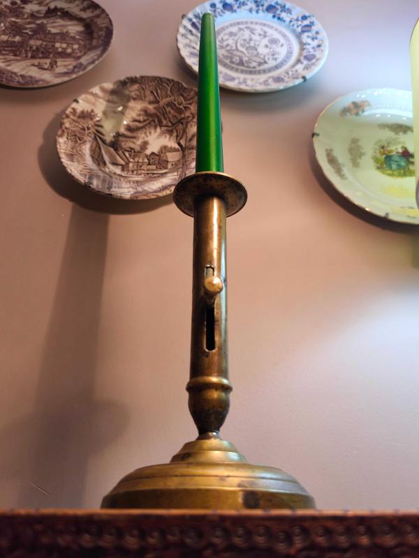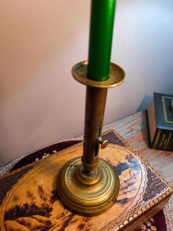 Antika Asansörlü pirinç şamdan. Çalışır durumda. Şık. Mum hariçtir.