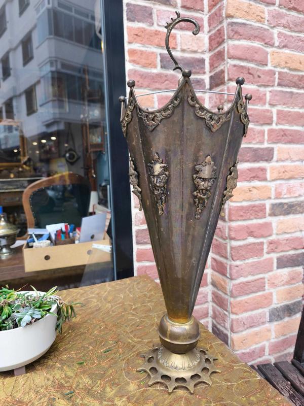 Antika Pirinç Şemsiyelik başlıklı antika/koleksiyon objesi Avrupa menşe’lidir. 1950-1999 arası dönemine aittir.