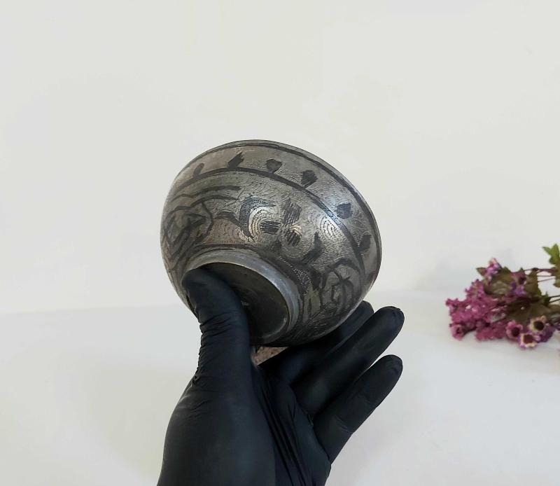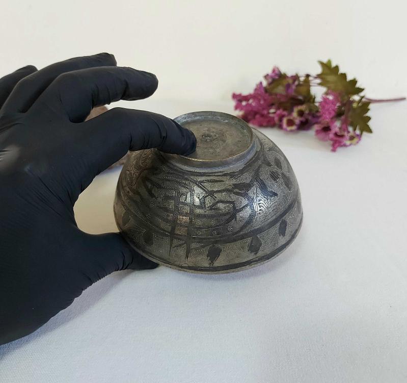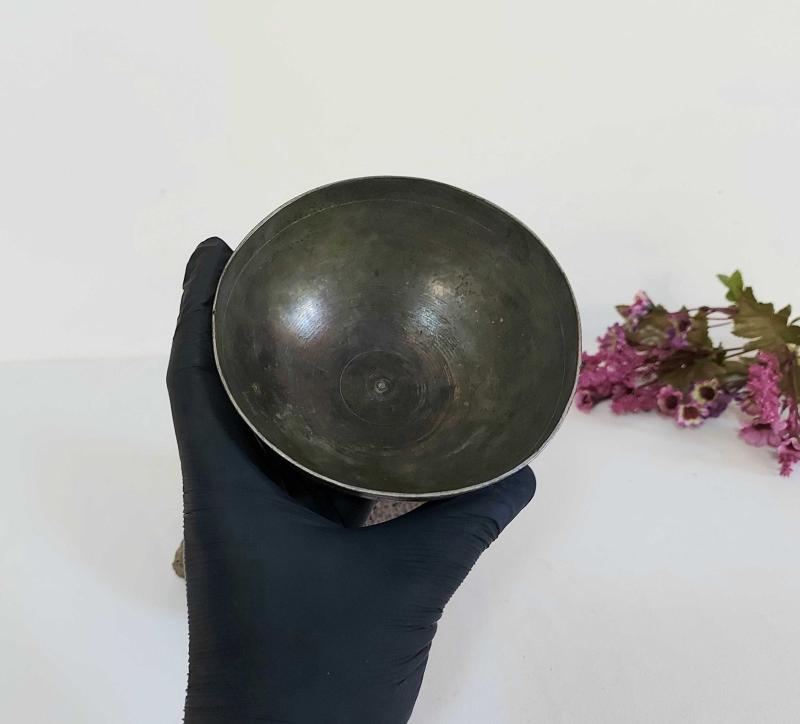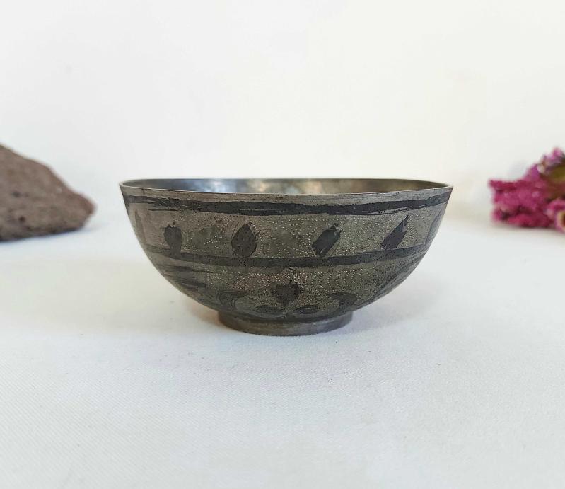 Antika Savatlı Tas - Çiçek ve Eski Yazı Süslemeli Şifa Tası başlıklı ürün, Antika-Koleksiyon, Hobi-Sanat > Antika > Antika Metal Objeler > Diğer Metal Obje kategorisinde İkinci El olarak satışa sunulmuştur.