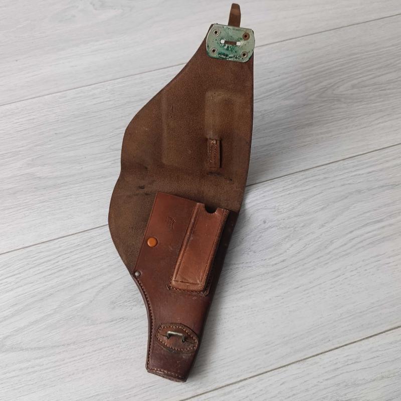II. Dünya Savaşı Subay Tabanca Kılıfı II. Dünya Savaşı yıllarında Türk subayı tarafından kullanılmış, “Beykoz soğuk damgalı” tabanca kılıfıdır. Yedek şarjör bölmeli ve kilit mekanizmasına sahiptir. Koleksiyonluk, yüksek kondisyonda deriden namül nadir bir parçadır.