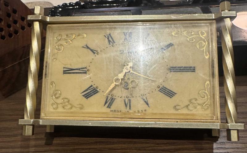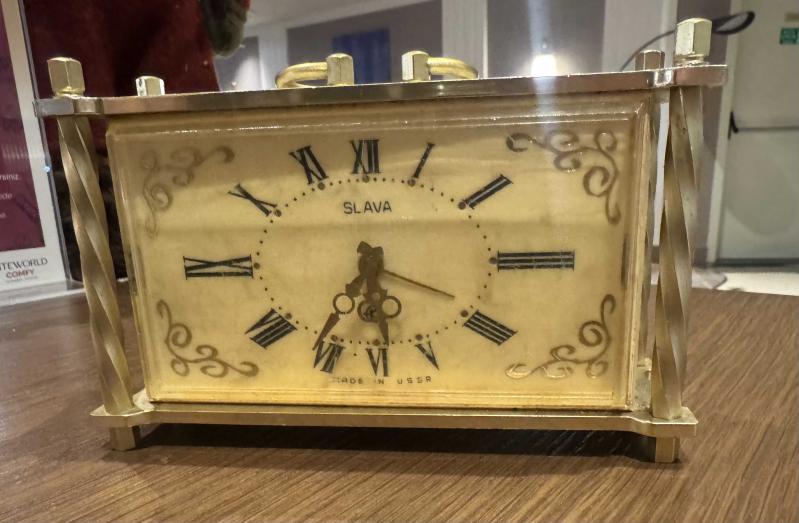 Antika Slava Şömine Saati Pilli Elektromekanik Sovyetler Birliği 1970'ler çalışır durumda. Arka kapağı yok başlıklı antika/koleksiyon objesi Rusya menşe’lidir. 1960-1979 arası dönemine aittir.