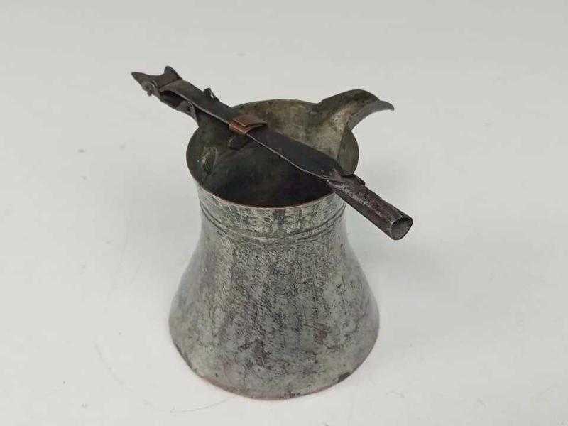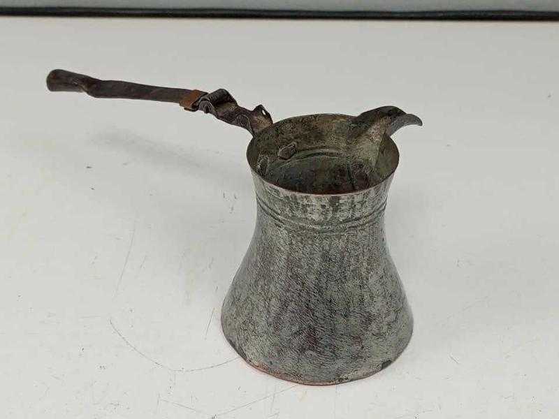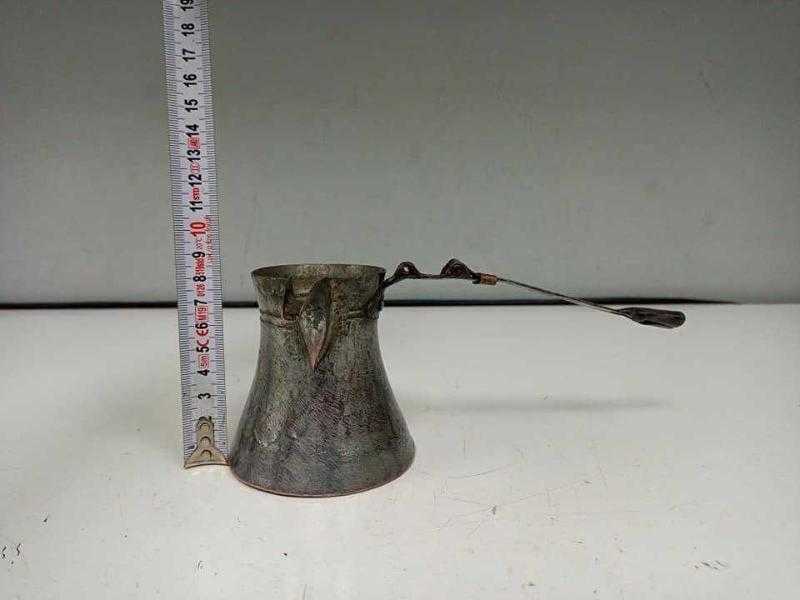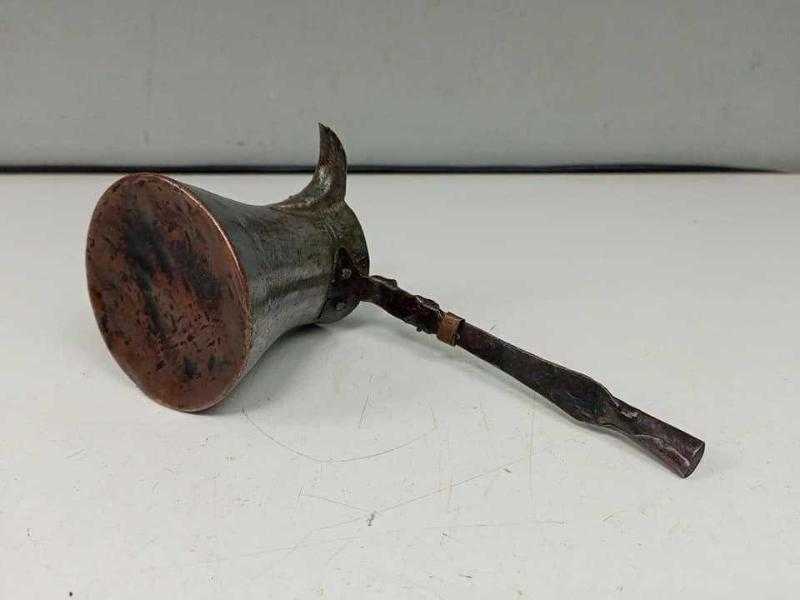 Antika Yaşlı Osmanlı Bakır Kahve Cezvesi başlıklı antika/koleksiyon objesi Osmanlı menşe’lidir. 1900 öncesi dönemine aittir.