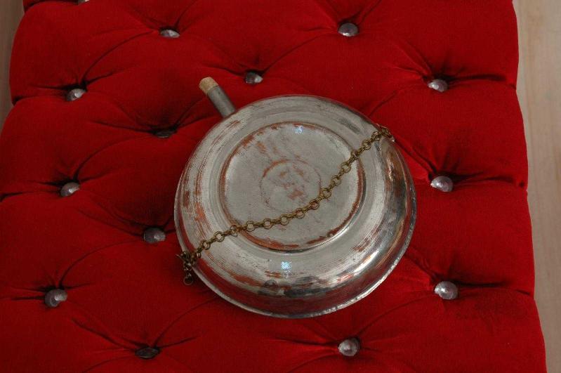 Antika Zincirli Metal Matara (Osmanlı Dönemi Tarzı) başlıklı antika/koleksiyon objesi Türkiye menşe’lidir. 1940 sonrası dönemine aittir.