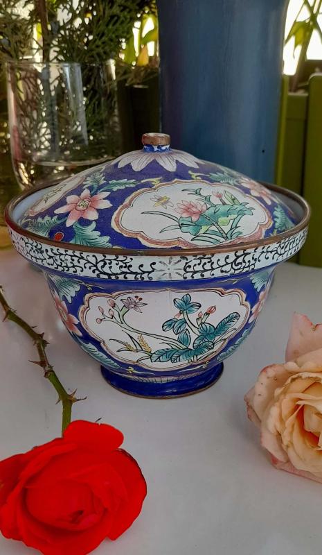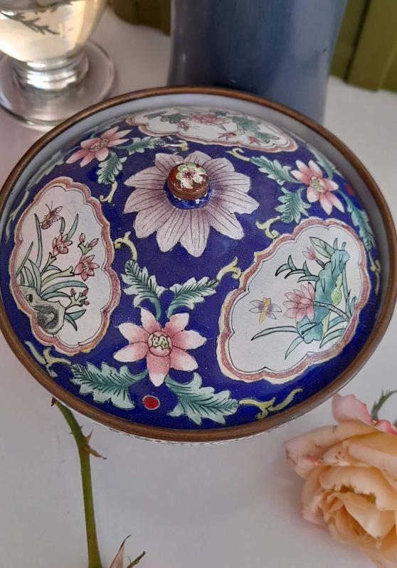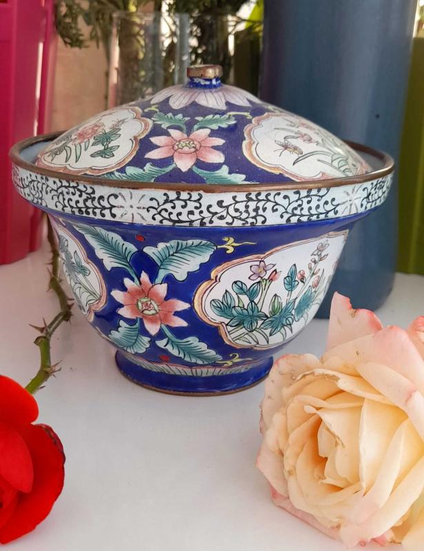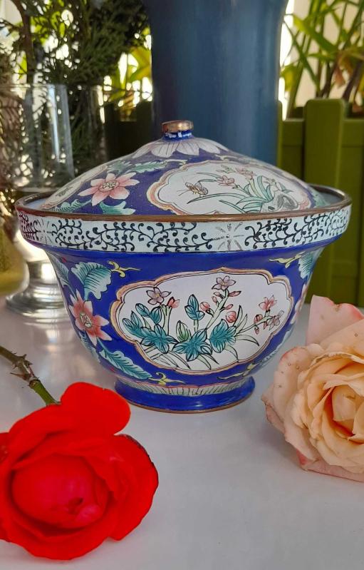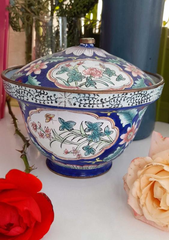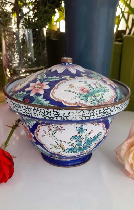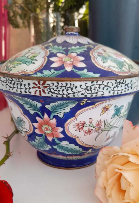 Antika art nouveau bakır mineli çiçekli kapaklı vazo şekerlik, en son 3 ay önce güncellenmiştir.