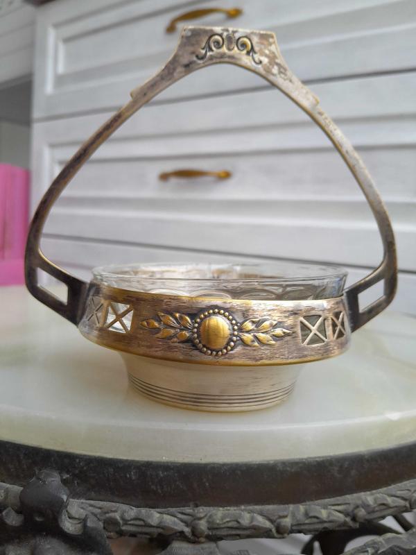 Antika art nouveau bakır sepet şekerlik Argentor başlıklı antika/koleksiyon objesi Avrupa menşe’lidir. 1900-1919 arası dönemine aittir.