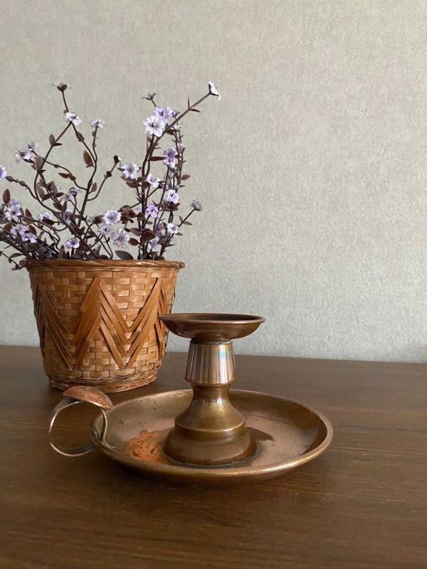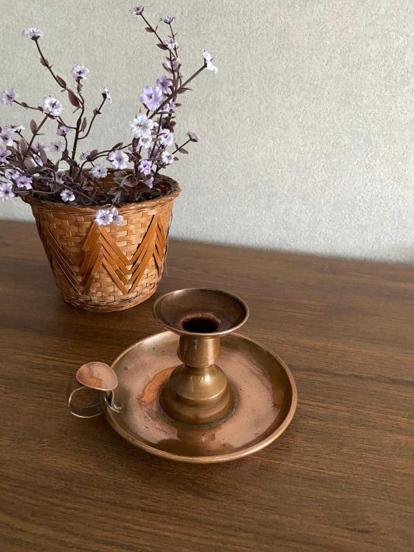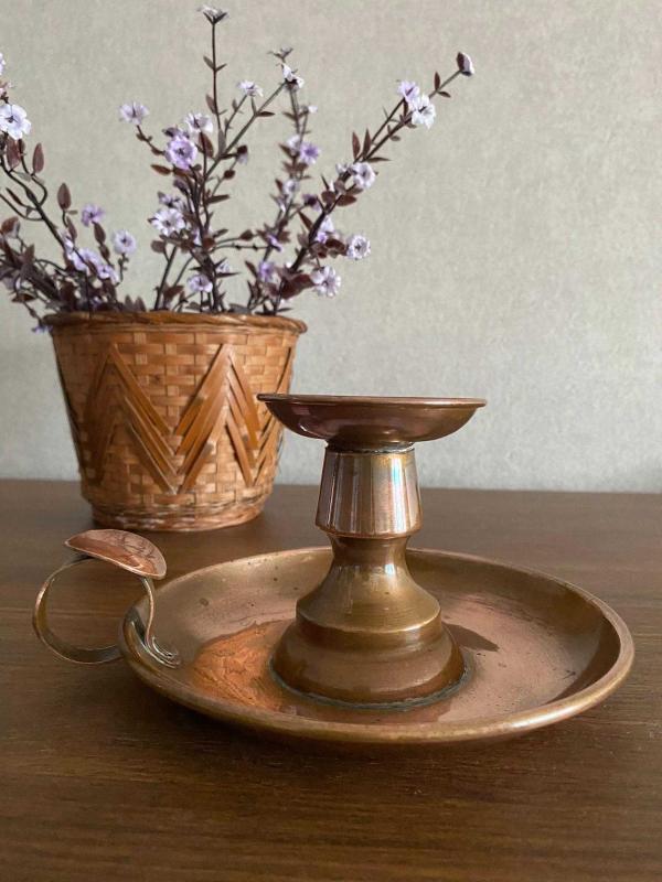Bu ürün 1960'lı yılların başında aile koleksiyonuna dahil edilmiştir. Bakır ustaları tarafından yapılan bu sanat eseri, ince ve estetik yapısıyla sizi evinizde tarihi zamanlara yolculuğa çıkaracaktır. Şamdan yüksekliği 10 cm - taban genişliği 17 cm - bakır gram 800 gr