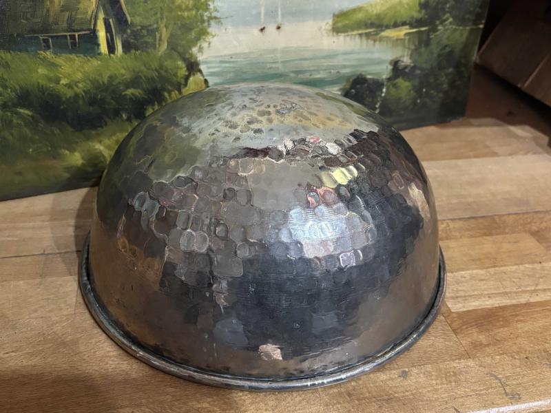 Antika bakır kap 1 kg ağırlığında 29,5 cm çapında 13 cm yüksekliğinde başlıklı antika/koleksiyon objesinin menşei belirtilmemiştir. Objenin ait olduğu dönem bilinmeketedir.