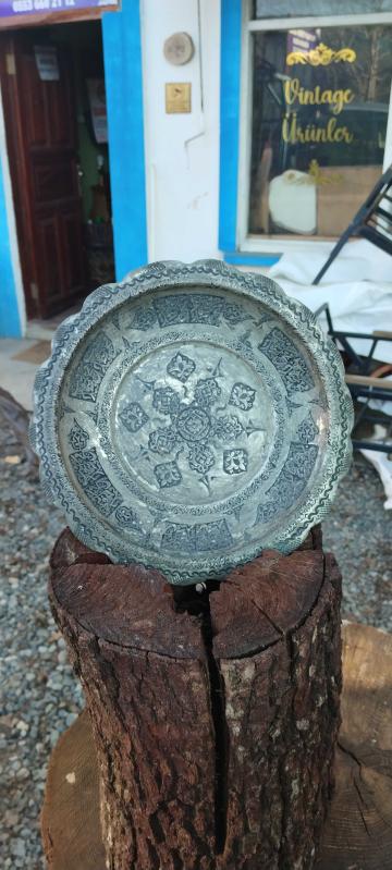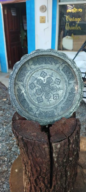 Antika bakır tabak başlıklı antika/koleksiyon objesi Türkiye menşe’lidir. 1920-1940 arası dönemine aittir.