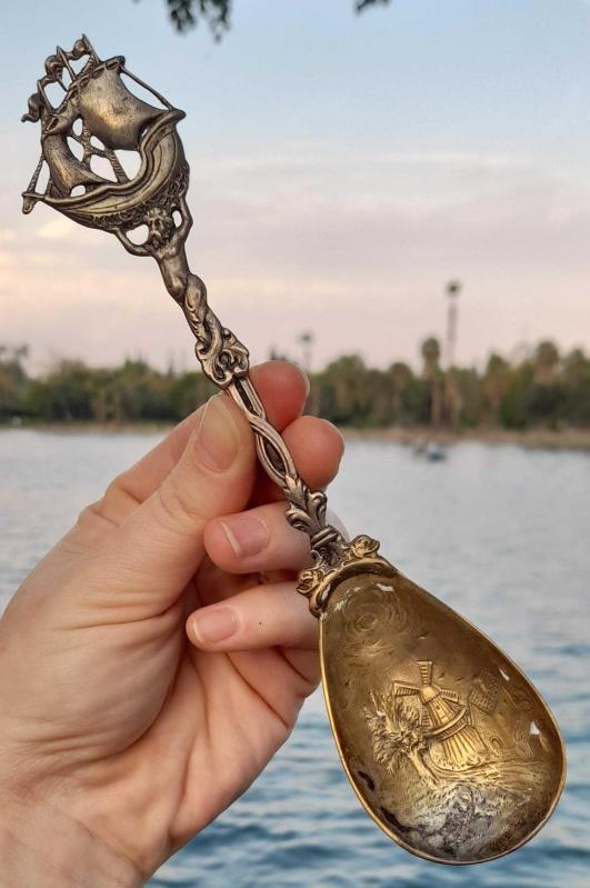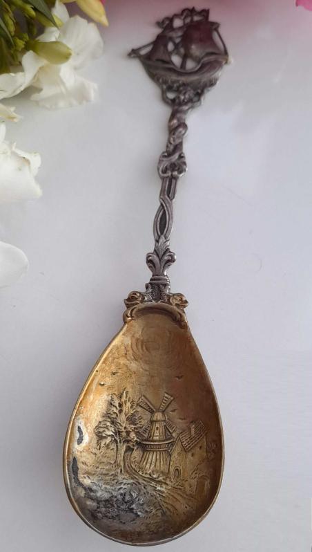Antika gerçek gümüş 800 ayar kaşık. Damgali. Çok nadir, aynı yoktur. Uzunluk 19,3 cm. Agırlık 50 gram.
