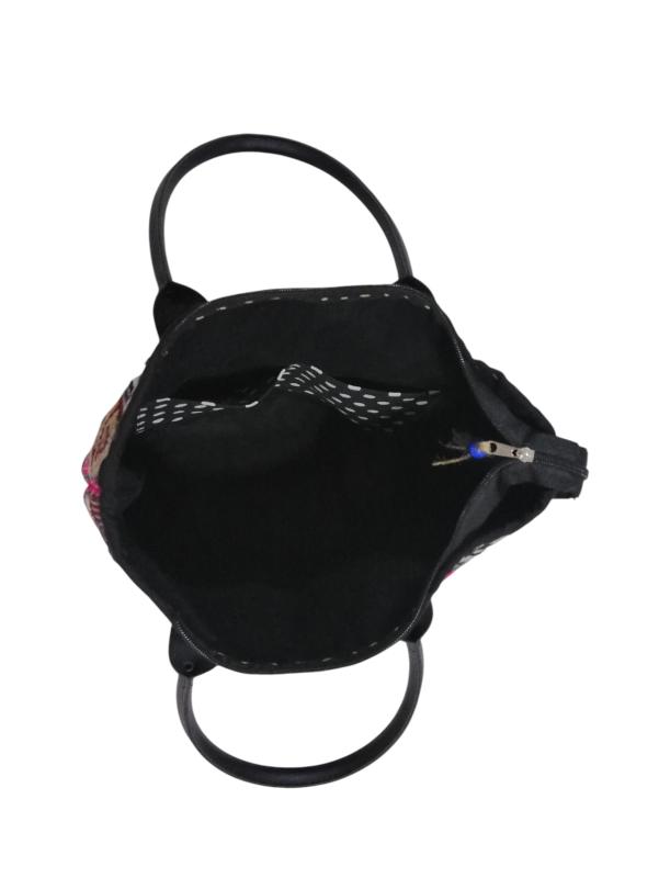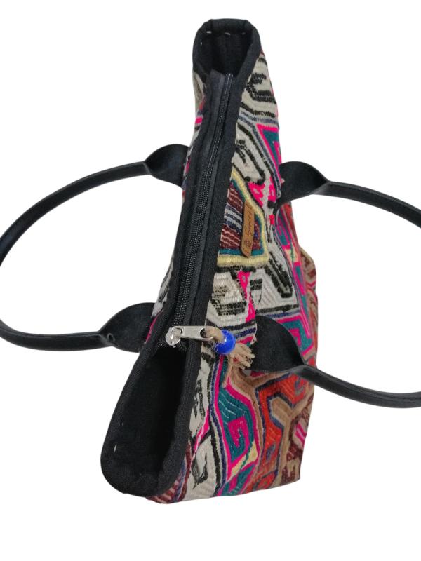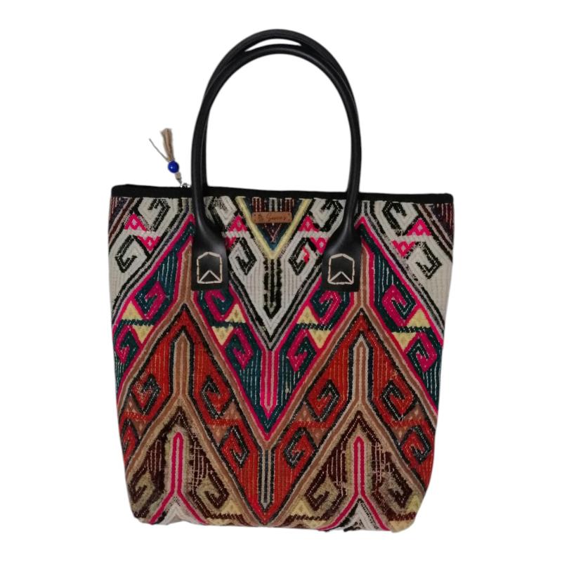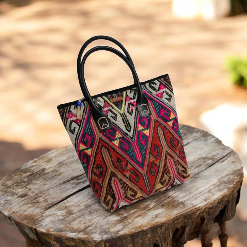 Geleneksel antika el dokuma kilim çanta tasarımı yapılmıştır. Astarlı, telalı ve fermuarlı çalışılmıştır. Çanta ölçüsü 35x38 cm