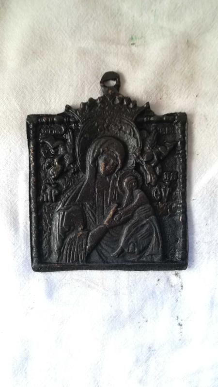 Antika görünümlü bronz ikon başlıklı antika/koleksiyon objesi Türkiye menşe’lidir. Objenin ait olduğu dönem bilinmeketedir.